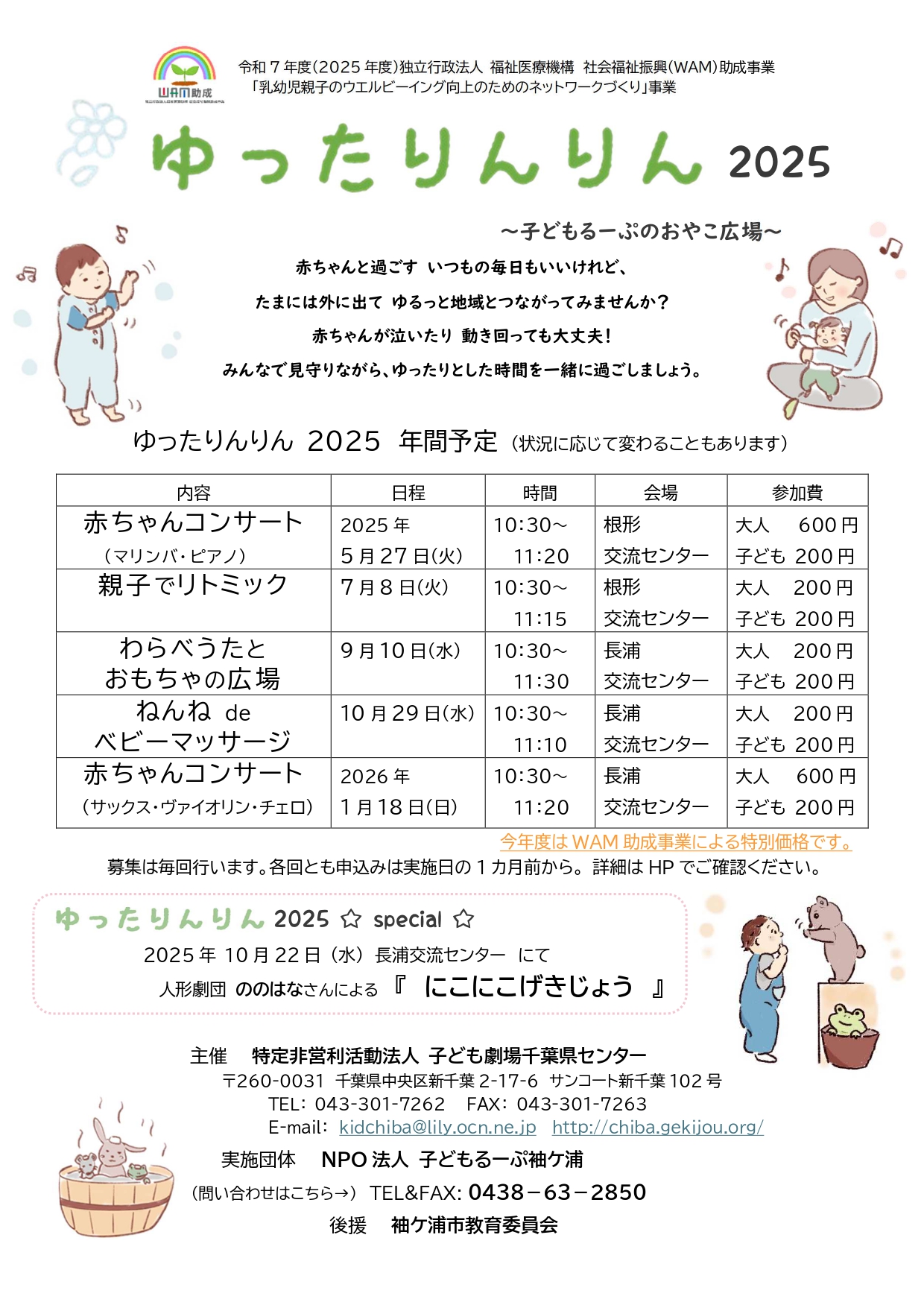 また18年前より地域の子どもに関わる団体と袖ケ浦市でつくりあげる親子のお祭りを主催し、2017年からは「子どもるーぷまつり」と名称を変え、袖ケ浦内の公民館で開催している。 体験活動ではプロの舞台を間近で観る「芸術鑑賞事業」や子どもも大人ものびのび自分を表現する「表現あそび」を不定期的で開催している。 |