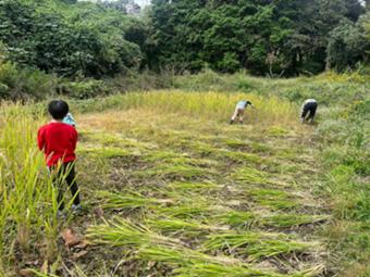 活動の中心には、森や畑での自然体験、野菜づくりに加え、絵画や造形、身体を使った表現などを通して、子どもたちが自分の個性を思い切り表現する時間があります。日常的な活動として、薪の火を起こして煮炊きを行い、火を慎重に扱いながら、時間と手間をかけて食事ができあがる過程に関わっています。 また、お米づくりでは、苗づくりから田植え、稲の成長を見守り、稲刈り、足踏み脱穀、とうみがけまでの工程を一貫して行っています。機械に頼らず、人の手で進める作業を通して、子どもたちは身体を使いながら、思うようにいかない場面で工夫し、失敗を経験として積み重ねていく過程に関わっています。 季節に応じて、柿・梅・柚子などの収穫にも取り組み、収穫した実を使った保存食づくりや調理にも関わっています。さらに、活動拠点の壊れた部分の修繕や簡単なDIY、日常的な草刈りなど、暮らしを維持するための作業も子どもたちと共に行っています。 活動は少人数で行い、子ども一人ひとりの状態や興味に応じて関わり方を調整しています。森や畑など、でこぼこのある自然の大地を歩きながら過ごす時間を大切にし、日常的に身体を動かす中で、身体の使い方の広がりや柔軟性に触れる機会となっています。回数を重ねる中で、自分の関われる場所や役割を見つけ、主体的に場に関わる姿も見られます。 また、年2回開催している「木のねっこふぇす。」では、子どもたちが自分でつくった作品や表現したものを並べ、来場者とやりとりをしながら販売する場を設けています。自分の手で生み出したものを手渡し、対価を受け取る経験を通して、社会とのつながりを実感する機会となっています。 木のねっこは、育て、つくり、火を使い、直し、整え、表現し、手渡すという日々の営みを通して、子どもたちが自分の足で立ち、生きていくための力を大地に根ざして育む活動を続けています。 |