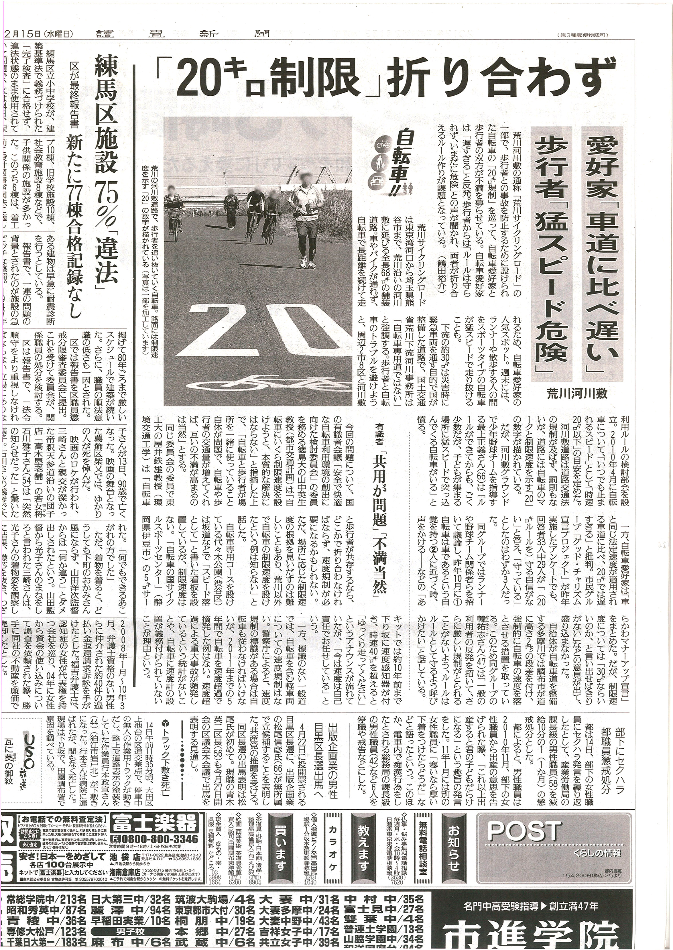 ・ 荒川河川敷沿いに続く「緊急河川敷道路」は信号に遮られずに舗装路が 30km以上も続く貴重な道として「アラサイ(荒川サイクリングロードの略)」と呼ばれて、自転車乗りに親しまれている。(管理している国土交通省は「自転車道」ではないので「サイクリングロード」と勘違いして欲しくないと言っている)多くのサイクリスト達は我が物顔でビュンビュンスピードを出して走り、野球、サッカーをしたり応援に来ている人、散歩やジョギングしている人に迷惑をかけている。実際、一昨年には深夜にお年寄りとロードレーサーに乗った人とで接触・死亡事故が起きてしまっていて、ますます自転車の立場が悪くなっていた。 そこで、昨年5月に荒川河川敷のスペースでマナー・青空集会を開き、リーダーの片山右京が参加、70人余りの参加者を集める。以後、7、9月と集会を開いた。これらの活動を国土交通省荒川下流河川事務所に報告し、事務所開催のマナーアップイベントをプロデュースした。このイベントでは集会で仲間になった皆で検討したマナー宣言を、河川事務所長に手渡した。これら、荒川の活動を継続して行い、発信していくことで河川敷道路だけでなく、一般道での自転車のマナーアップにもつながると確信している。 ・ 二点目 我々が被災地に自転車を通じてお役に立てないかと考えていたところ、岩手県陸前高田市で、過去にロードレース大会が行われていた事を知り、被災地を走るサイクリング大会を企画し、市に提案し、2012年9月に第1回が開催された。地元にも県外の参加者からも大変好評を博したので今後も年に一度是非続けて行きたいと思っている。 ・ 三点目 2012年3月にリーダーの片山右京氏が企画した子ども向けの自転車イベントで自転車ルールのクイズを出したり、先述の陸前高田でも子ども向けの自転車教室を開催した。今後は子ども達への正しい自転車の交通ルールを教える活動もしていきたいと思っている。 |