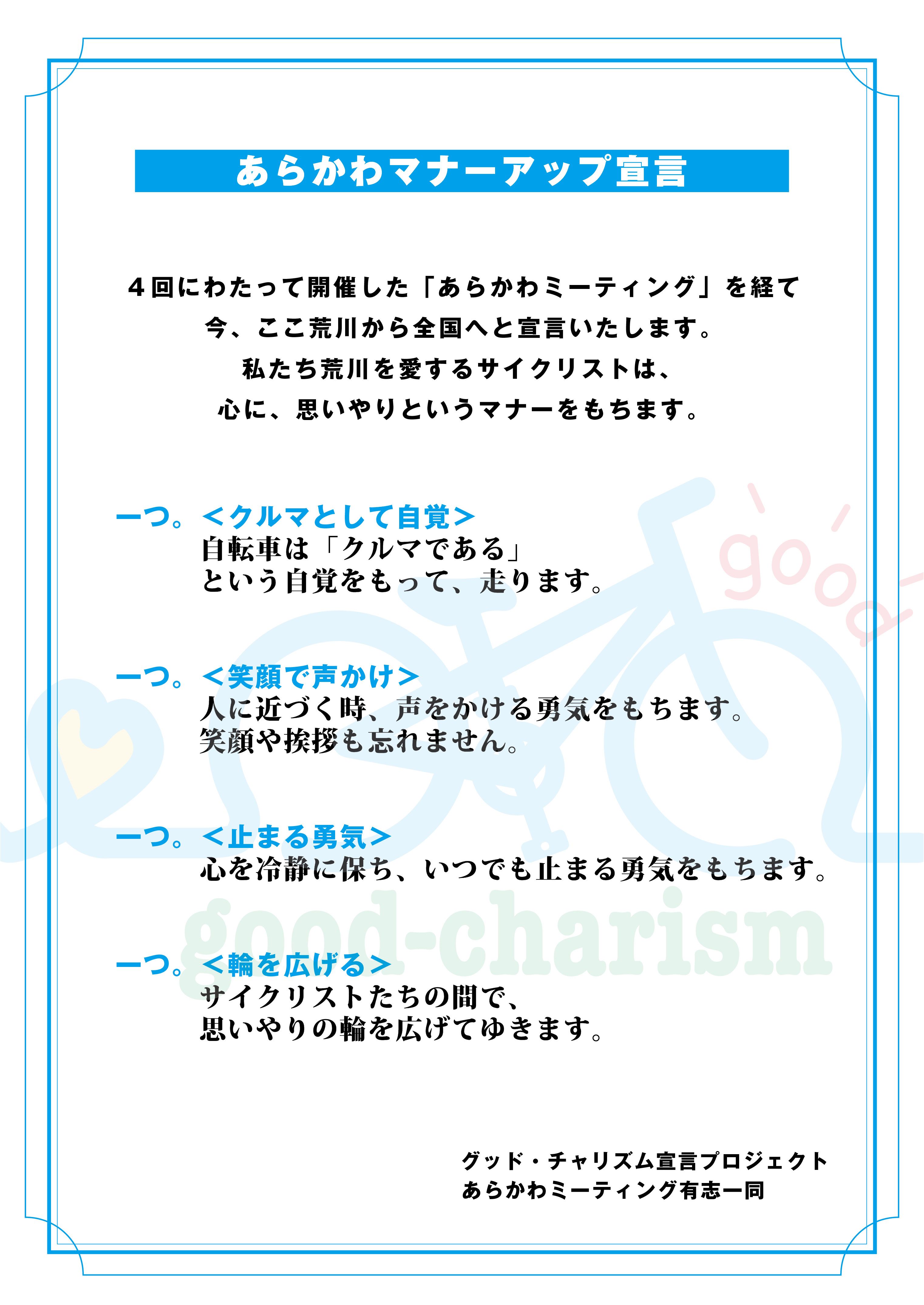 ・ 「グッド・チャリズム宣言」を掲げて自転車に乗る人に賛同を呼びかける。