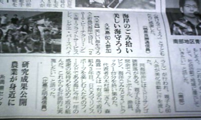 ビーチクリーンが沖縄タイムス(新聞に)掲載