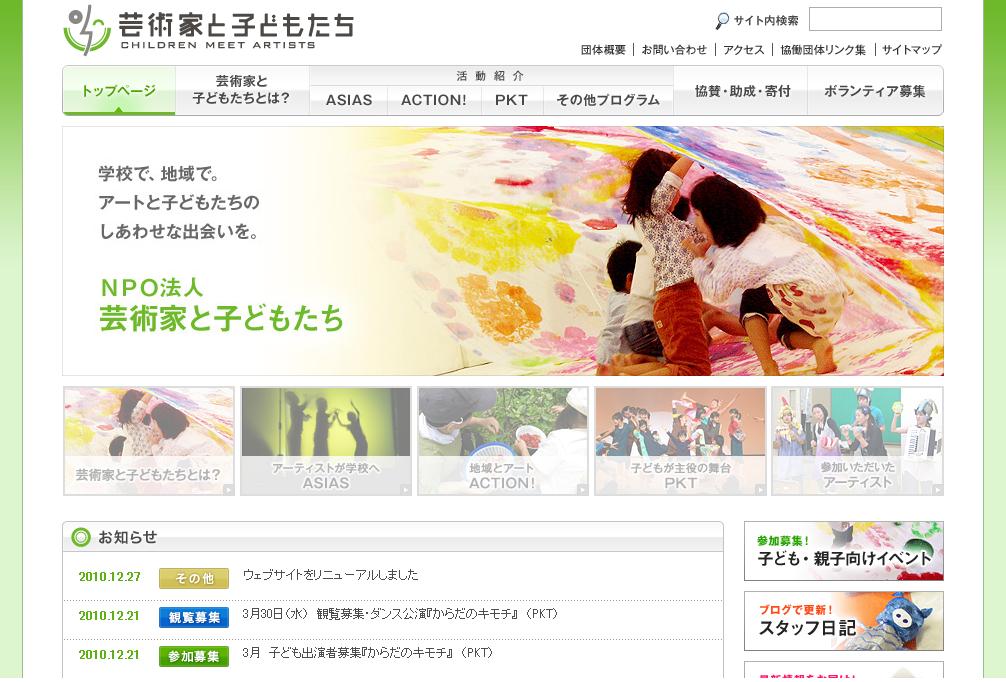 NPO法人 芸術家と子どもたち ウェブサイト