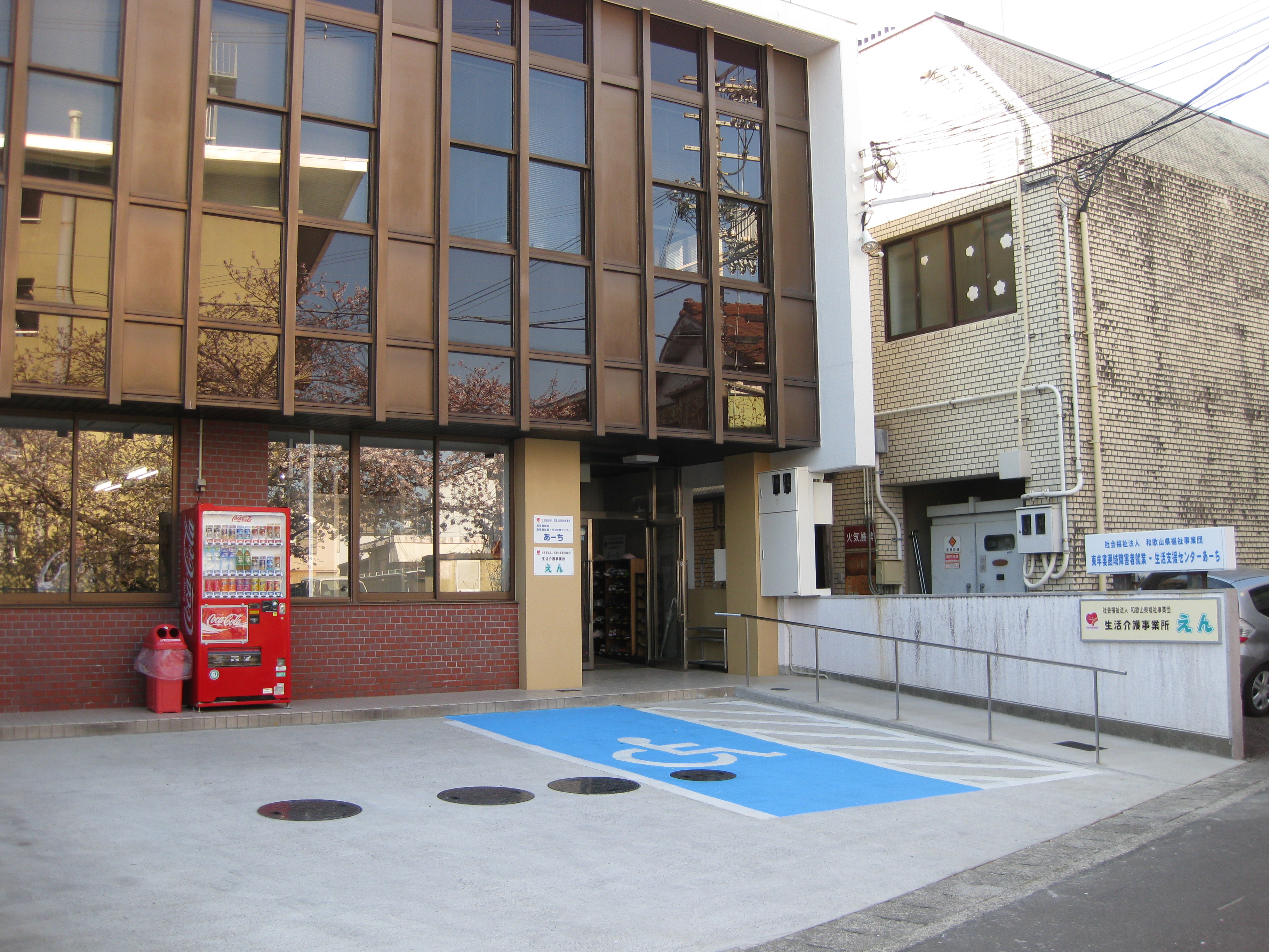 障害者支援施設(生活介護)の整備 2.目的 当該地区は、和歌山県東牟婁圏域の中核都市であり、障害福祉サービス事業所は近隣市町村と比較すると数多くあるが、新体系に移行し生活介護事業を行っている事業所は2ヶ所しかなかった。その様な中で、活動の拠点(建物)を市街地に置き、地域で暮らす障害者に対して、日中活動サービスの提供を行うことの必要性は高い。 3.事業内容 当法人が所有する事務所を改修し、定員20名の障害福祉サービス事業所(生活介護)を整備する。 改修内容 レイアウト変更、内装・階段・トイレの改修、厨房の設置 面積 敷地 247.66㎡ 延床 269.46㎡ 構造 鉄筋コンクリート2階建 |