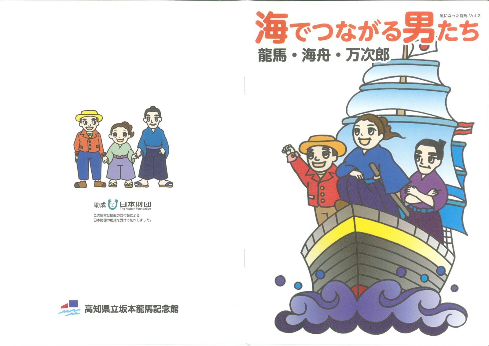 企画展「風になった龍馬展VOL.2~時代の力~」子供向け冊子「海でつながる男たち」の表面、裏面です。