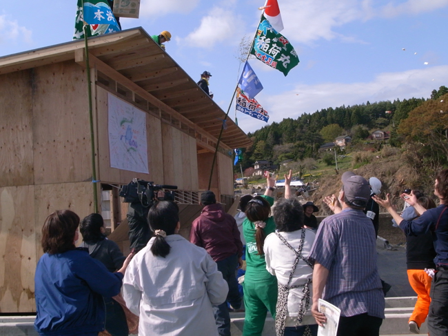 番屋プロジェクトとは、津波被災地である宮城県本吉郡南三陸町志津川で行われた産業復 興プロジェクトです。漁業の町である志津川において、「生活の復興と、産業の復興は同時。 仮設住宅だけでなく、仮設産業施設も必要」との考えから、その第一歩として番屋を建設す ることになりました。番屋とは漁師達が休憩、寝泊りする産業の最前線拠点となる場所です。 このプロジェクトは宮城大学の竹内研究室を中心として、宮城大学、滋賀県立大学、東京理 科大学、横浜国立大学などの学生、志津川の大工、漁師達その他多くの方々の協力によっ て建設されました。 番屋建設のための木材は、私たち木興プロジェクト(かしも木匠塾)が例年お世話になってい る、岐阜県加子母村の中島工務店により提供されました。 今回参加してきたことで、現地の方々の溢れんばかりの元気と心意気に触れ、応援しにいっ たはずの私たちが、逆に勇気付けられました。志津川の皆さんほんとにありがとうございました。 今後番屋は、志津川の方々の手によって様々な用途に使われ、活動拠点になっていくことで しょう。本当にすばらしいプロジェクトでした。 |
