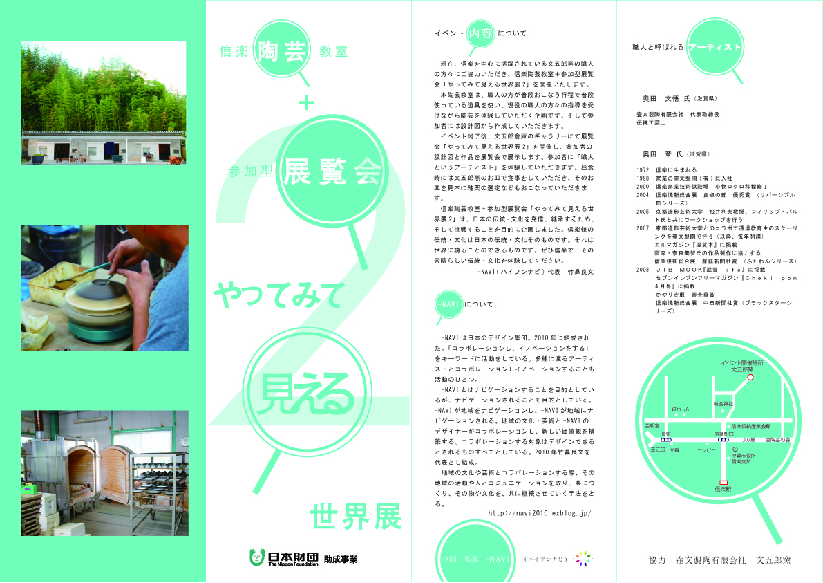 信楽陶芸教室+参加型展覧会「やってみて見える世界展」のパンフレットです。