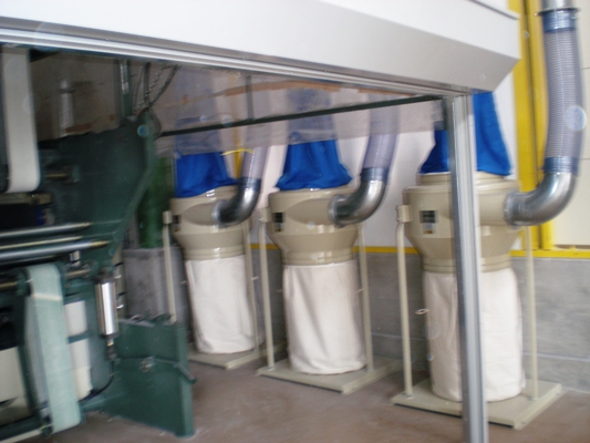 ・平成23年度 ■ 事業金額 ・事業費総額 10,293,000円 ・助成金額 5,000,000円 ■ 事業内容 「みはらしの丘(就労継続支援B型事業所)」では、トイレットペーパーの製造・販売を行っています。 トイレットロールの原紙から抄紙機にかけてロール(製造)にする際、大量の紙粉が発生します。 そのため、紙粉が原因でエアコン等が殆ど使用できなくなり、利用者の作業環境としては良い環境とはいえませんでした。 今回の助成でより高性能な集塵設置工事をすることにより、環境整備をすることにしました。 ●静岡県袋井市「株式会社 ムラコシ」に集塵機設備を依頼 集塵設備 … ・ フード ・ブロワ― ・サイクロン 1台 ・簡易集塵機 3台 で構成しました。 ●環境整備工事 ・集塵効果をより効率良くするため、抄紙機に壁・屋根・シャッターを 取り付ける。 ・作業場にエアコンを2台設置 ・換気用窓設置 ・集塵設備設置に伴い、使用電力増加に伴う電気工事 を行いました。 集塵設備工事を行った結果、より良い環境で作業に取り組むことができます。 |