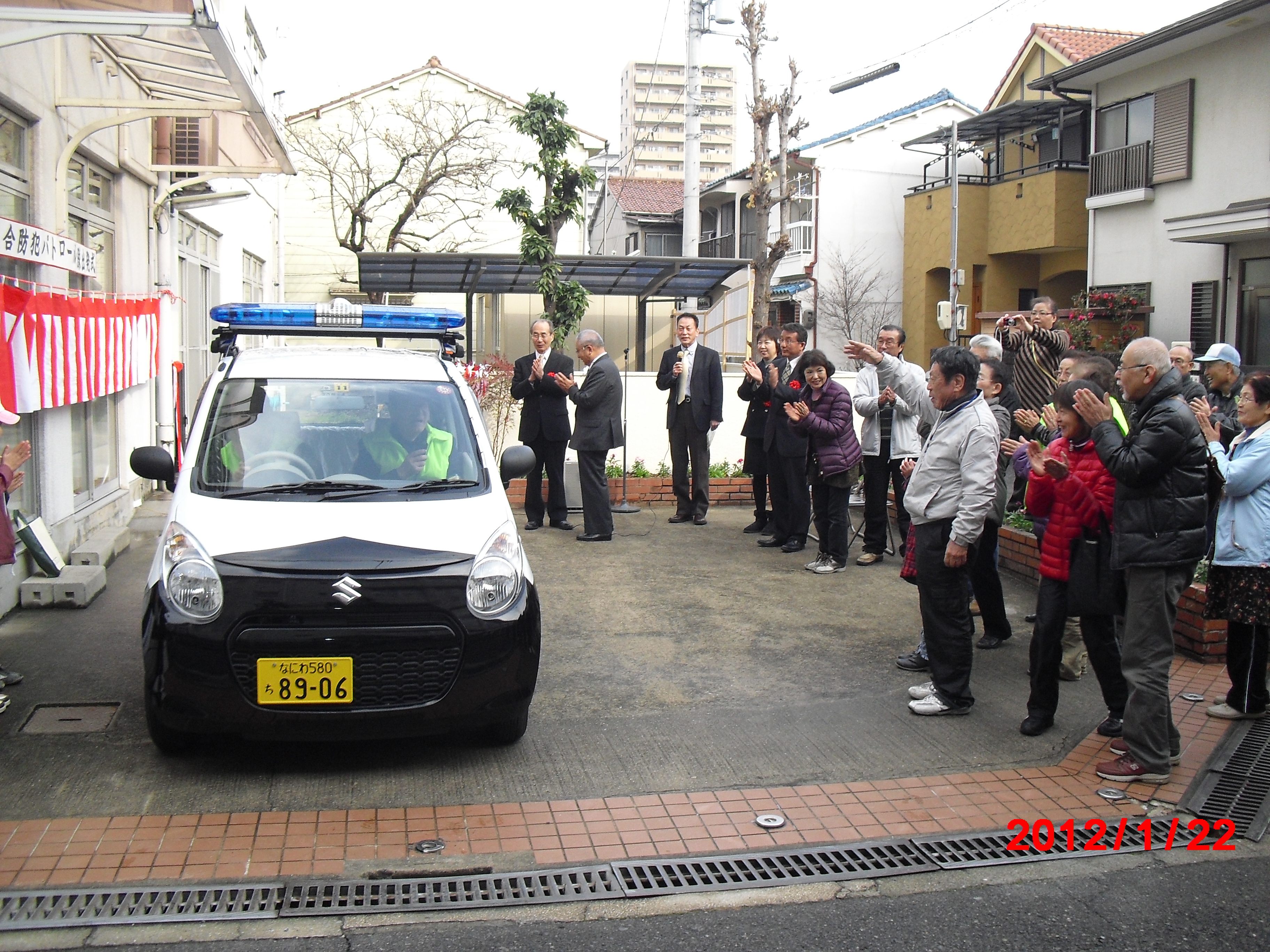 地域防犯活動推進のためのパトロール事業 2.目的 事業を通じて住之江連合町会全域の安全安心を確保する。 3.目標 ボランティア各団体と事業を共に運営することにより 一層の地域コミュニティづくりを目指す。 |