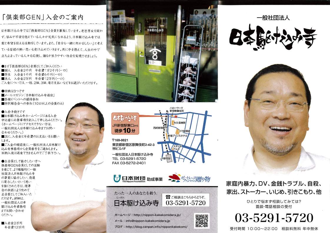 電話番号やウェブサイトの案内を入れてあります。ひとりでも多く、困りごとのある方の目にとまるようつくりました。 |
