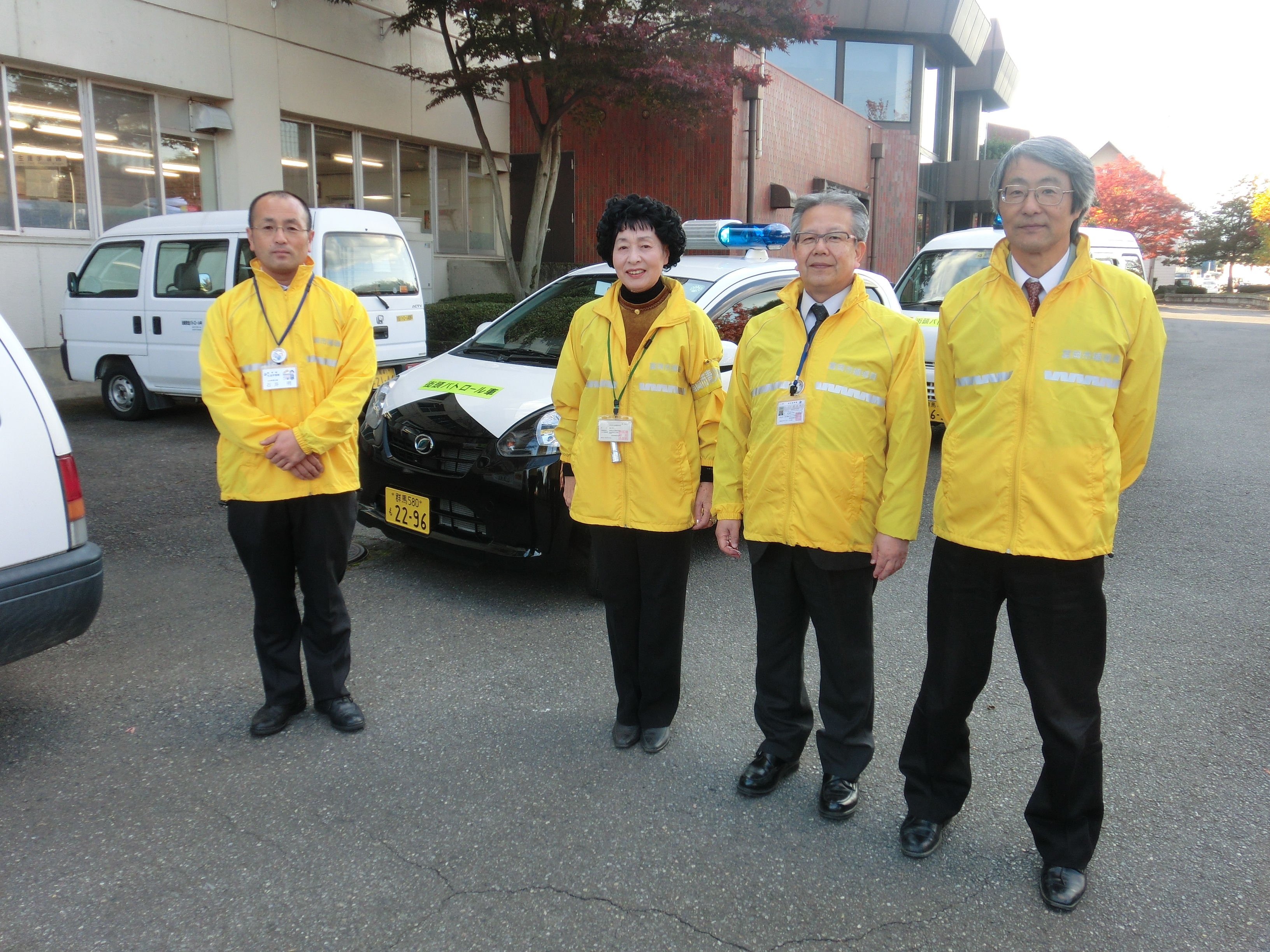 富岡市青少年補導員協議会は財団から助成を受け購入した青パトと、富岡市内にある公民館所有の青パトと協力して、小中学校の児童生徒の下校時にあわせ、市内一斉街頭パトロールを実施しました。市内に青パトが一斉に街頭パトロールを実施したのは、今回が初めての試みであった。今回の購入した青パトが大活躍であった。 |