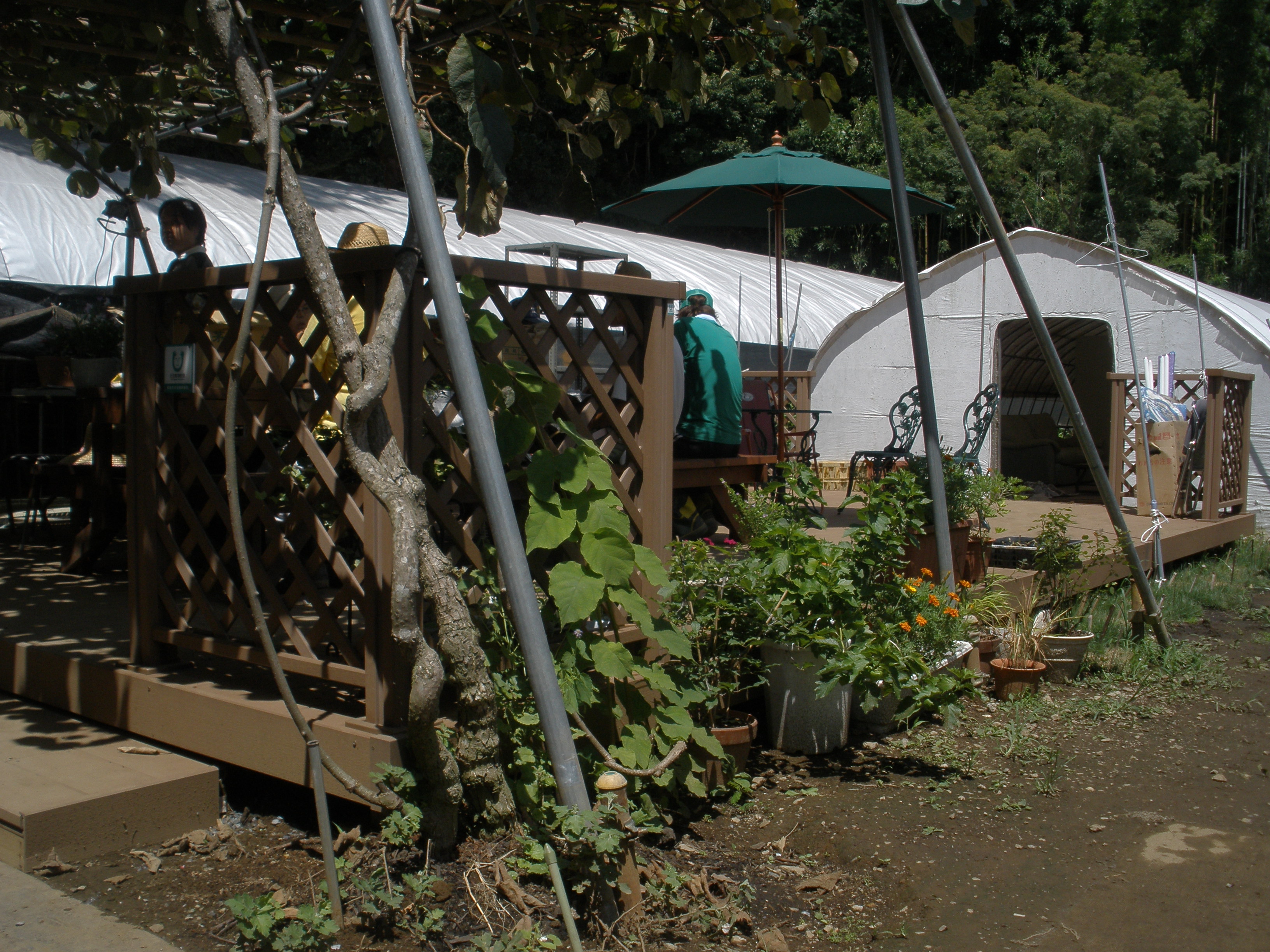 2.目的 就労事業拡大に伴いプレハブ隣及びキウイ棚付近にサンルーム・ウッドデッキを新規設置する 3.内容 サンルーム・ウッドデッキの設置 4.設置場所 就労継続支援B型農園「夢畑」 |