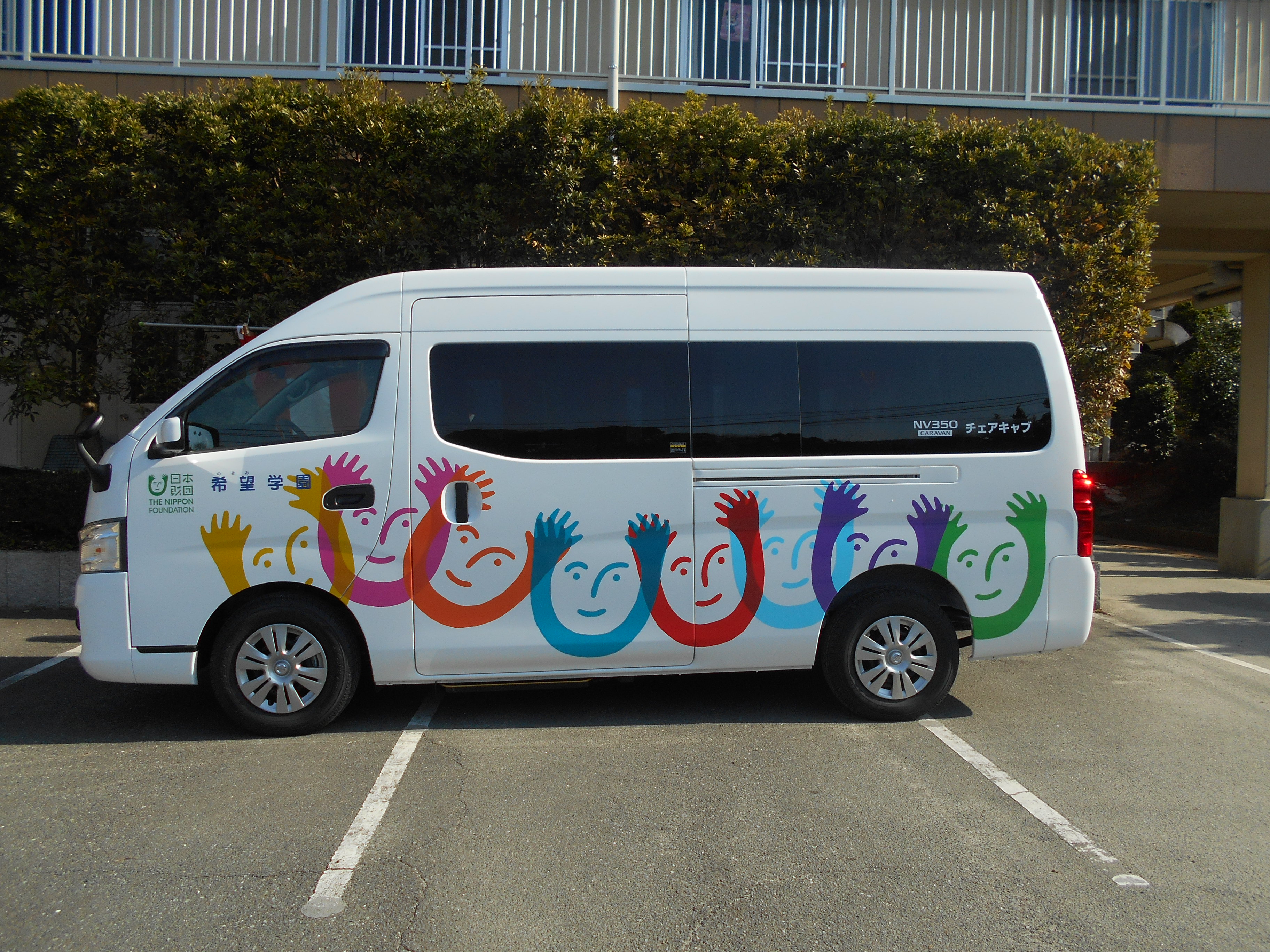 2015年福祉車両助成整備事業 2 事業総額 262万8000円 3 助成金額 210万円 4 車種 日産/キャラバンチェアキャブM仕様2WDガソリン10名乗り/内車いす2台 5 保管場所 障がい者支援施設「希望学園」 福岡県糟屋郡宇美町ゆりが丘6丁目15番1号 6 事業完了日 平成28年3月2日 7 助成機関 公益法人 日本財団 |
