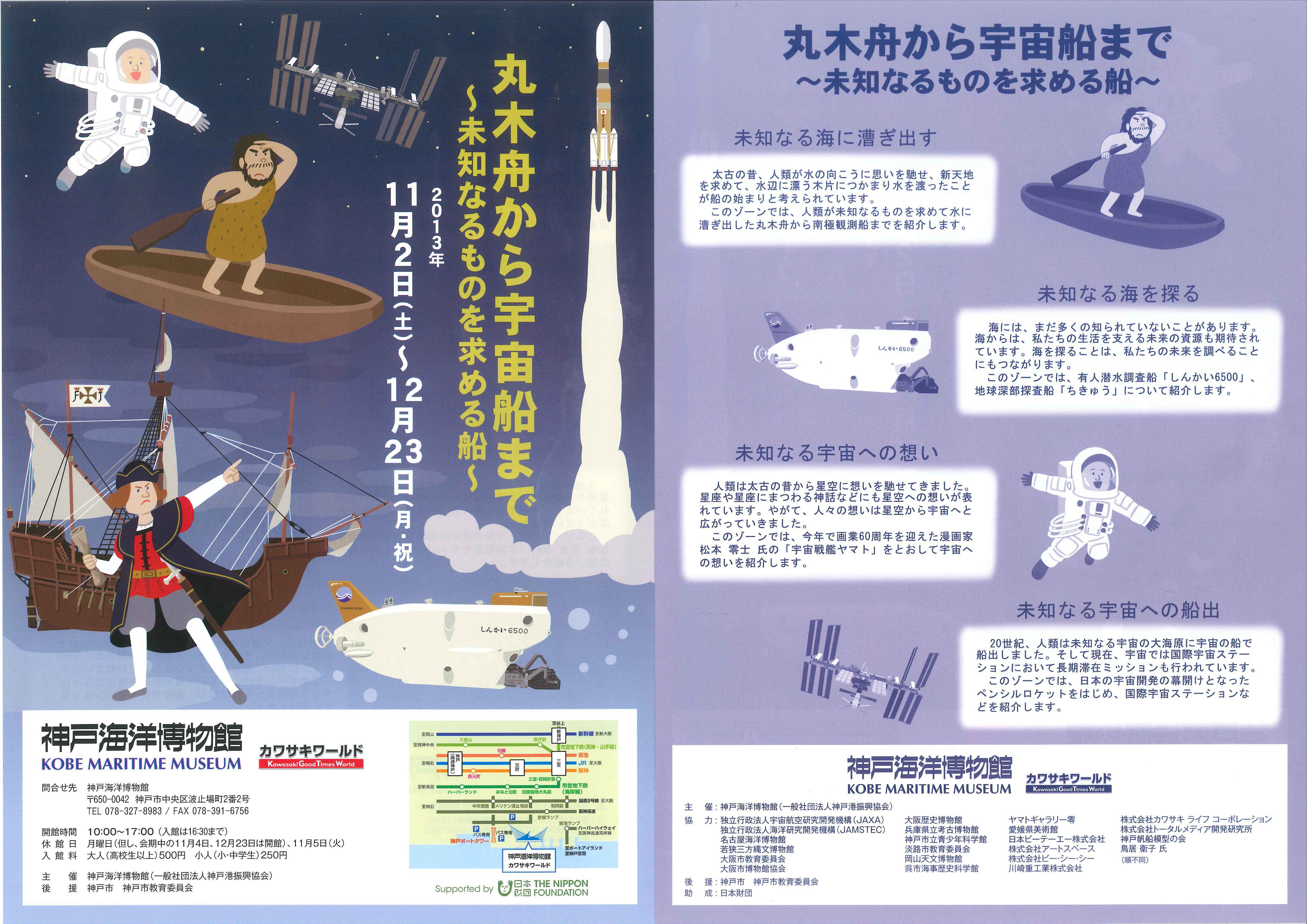 2013年度神戸海洋博物館特別展「丸木舟から宇宙船まで~未知なるものを求める船~」