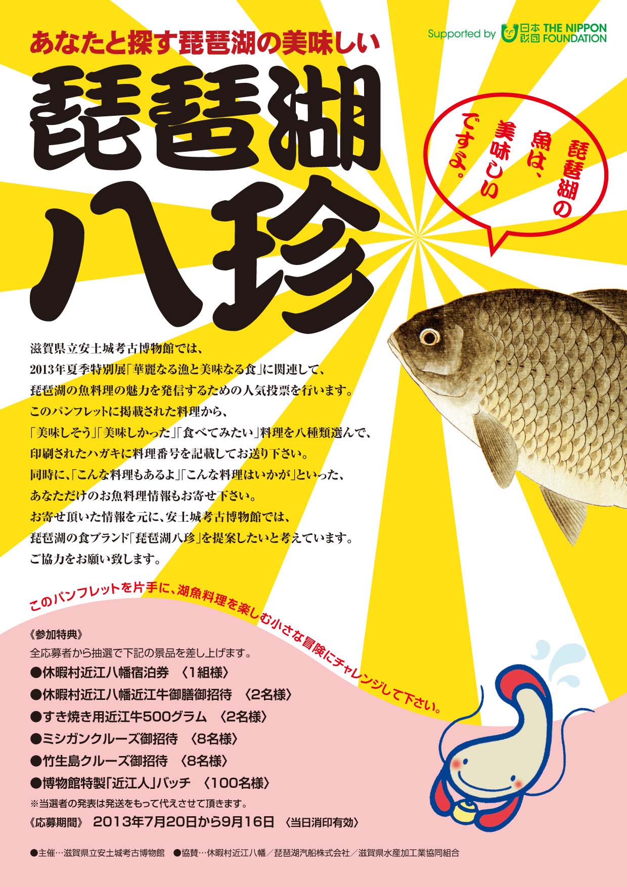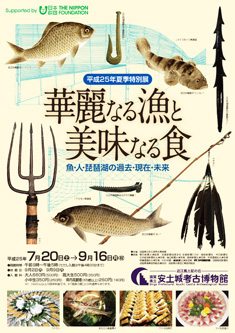 32,000枚作成 2013年度 夏季特別展「華麗なる漁と美味なる食-魚・人・琵琶湖の過去・現在・未来-」の広報用に作成したもの。 |