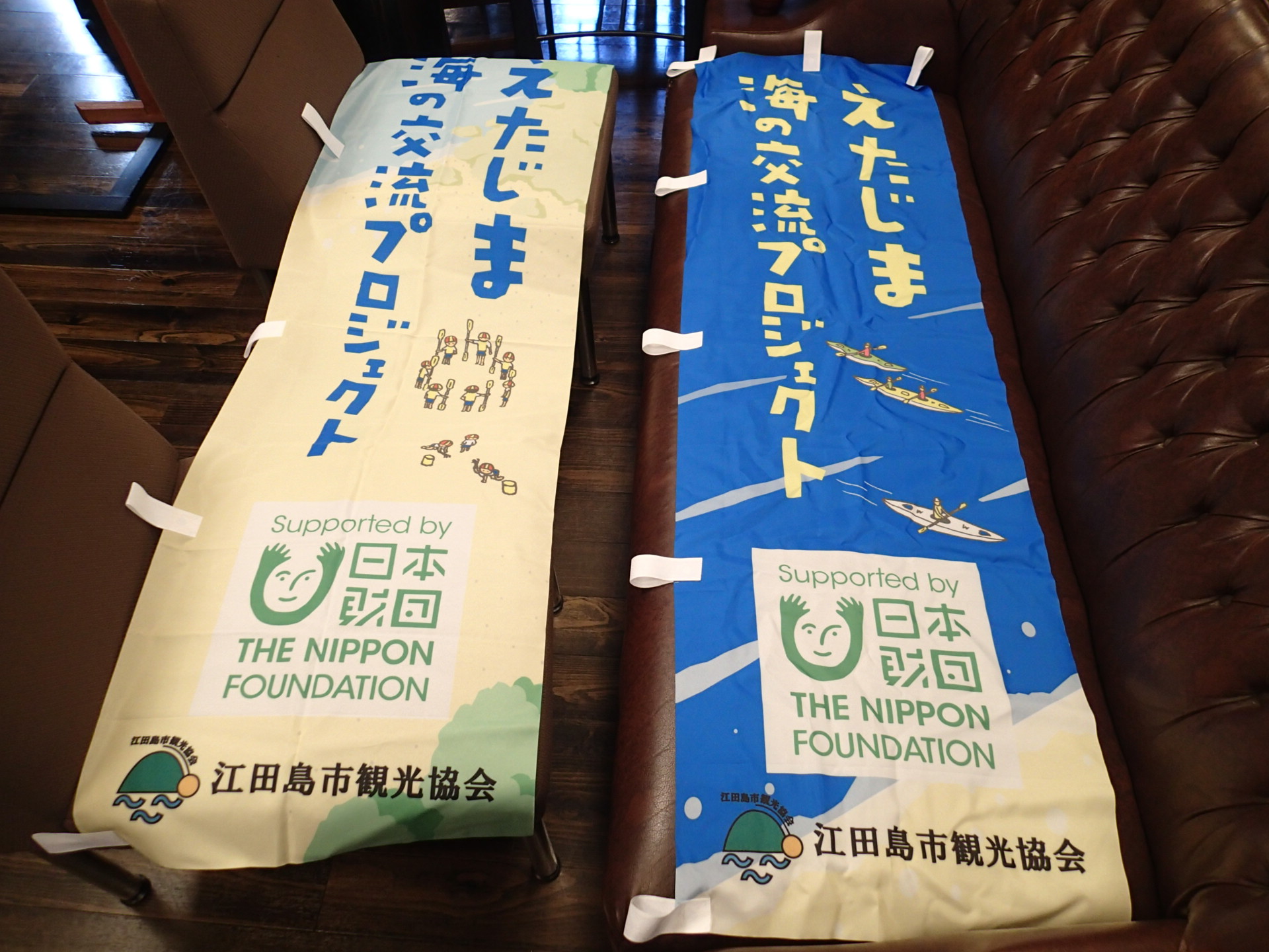 1.活動PR用の幟 2.購入備品等(啓発用ポロシャツ,会議用ホワイトボードなど) |