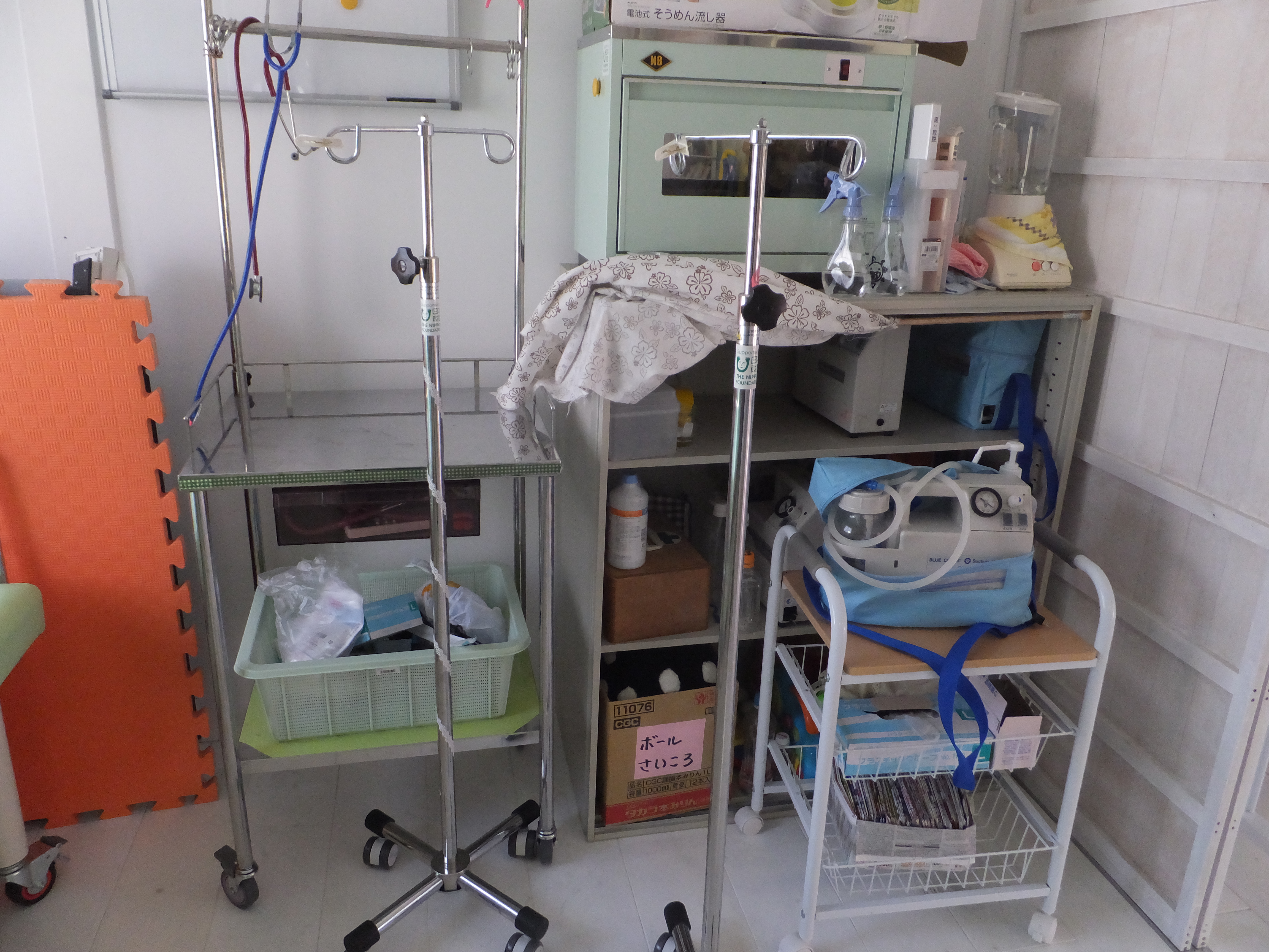 ・エマジソンネブライザー ・エマジソン小型吸引器 ・エマジソン小型携帯吸引器 ・イリルガードル台 ・キャリー型酸素注入器 ・殺菌線保管庫 ・救急蘇生セット成人、小児用 ・水銀血圧計 ・コンパクト点滴処置車 ・デジタル車いすスケール ・パルオキシメーター |
