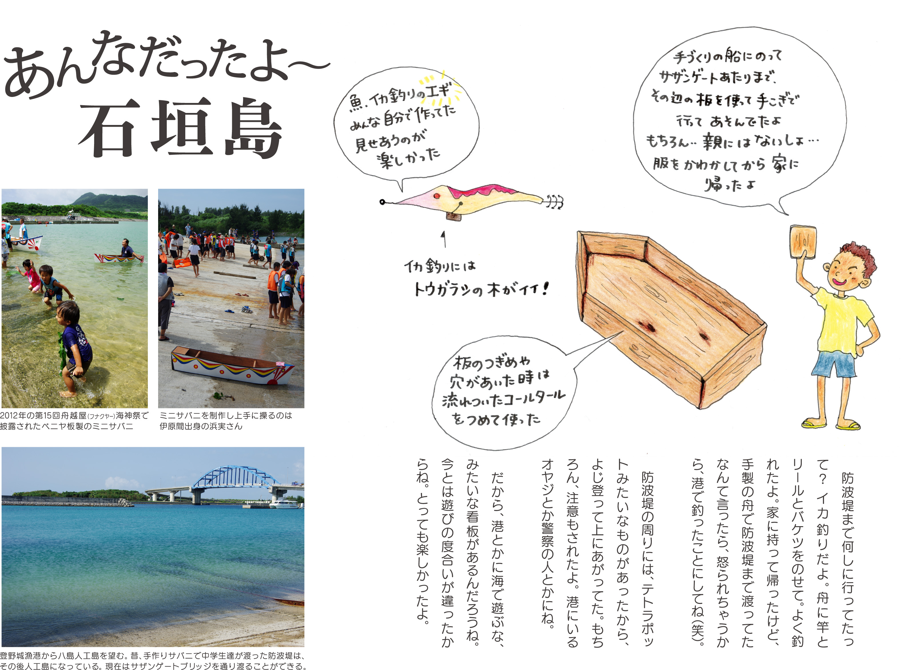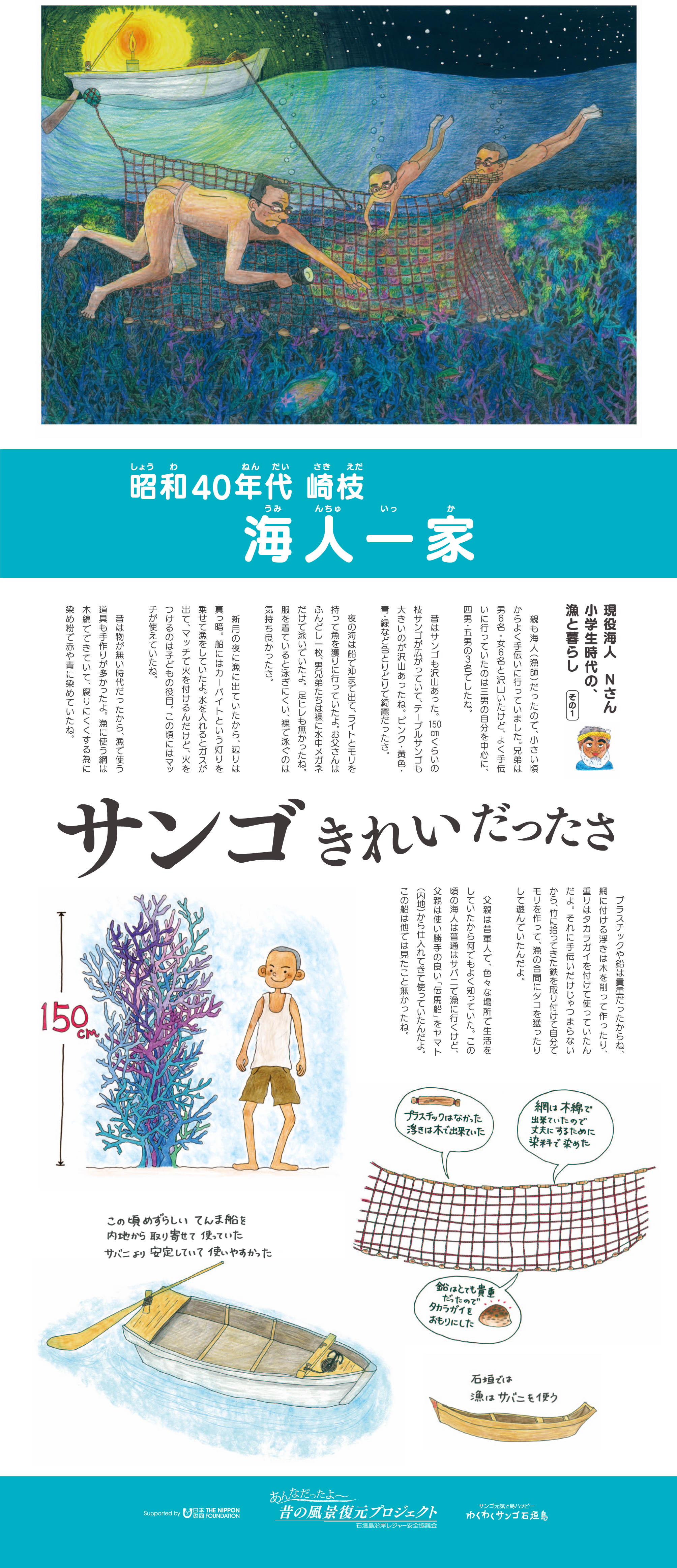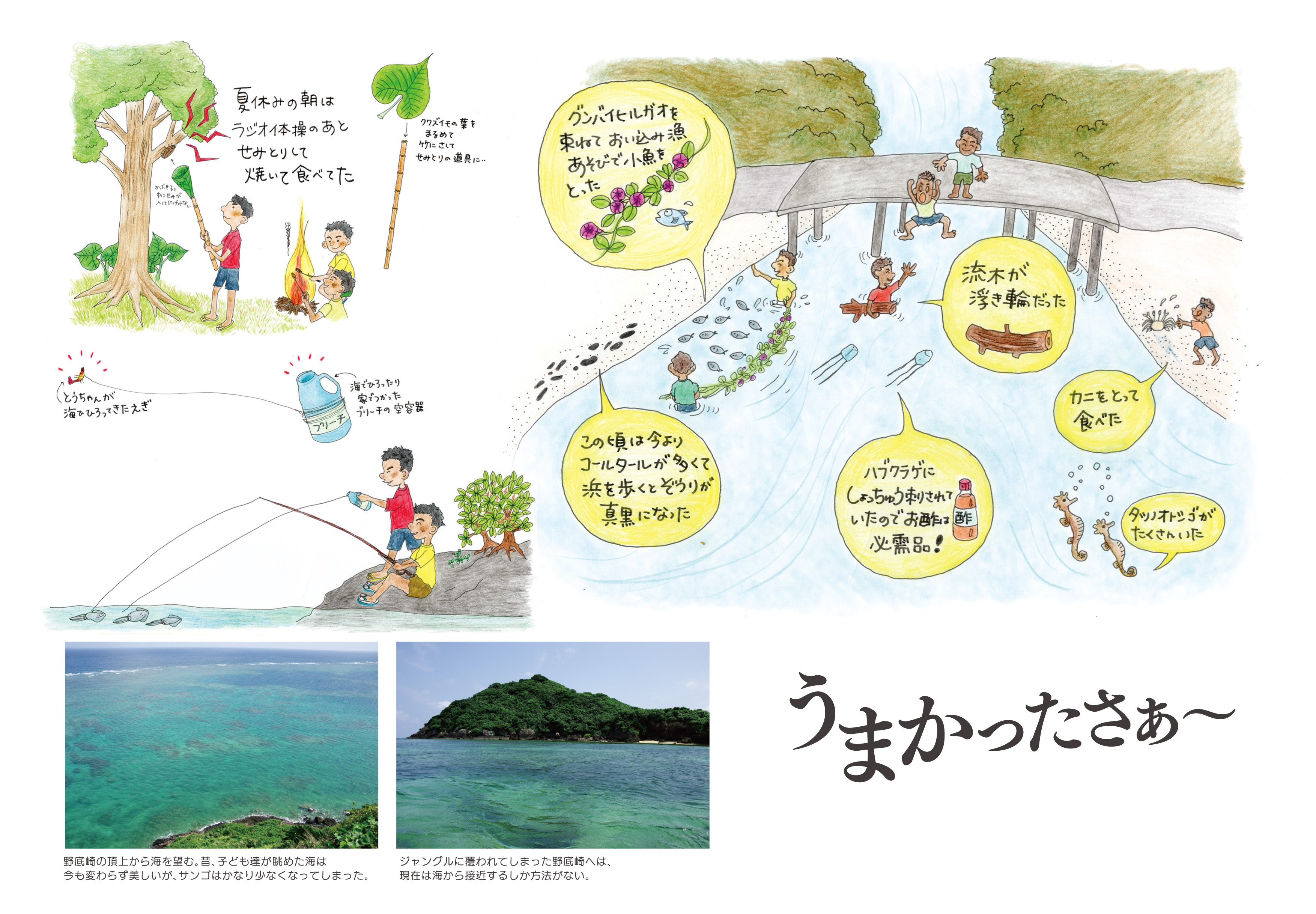 サンゴ礁に関する昔の思い出について聞き取り調査を行い、思い出の中の昔の風景をイラストとして制作。