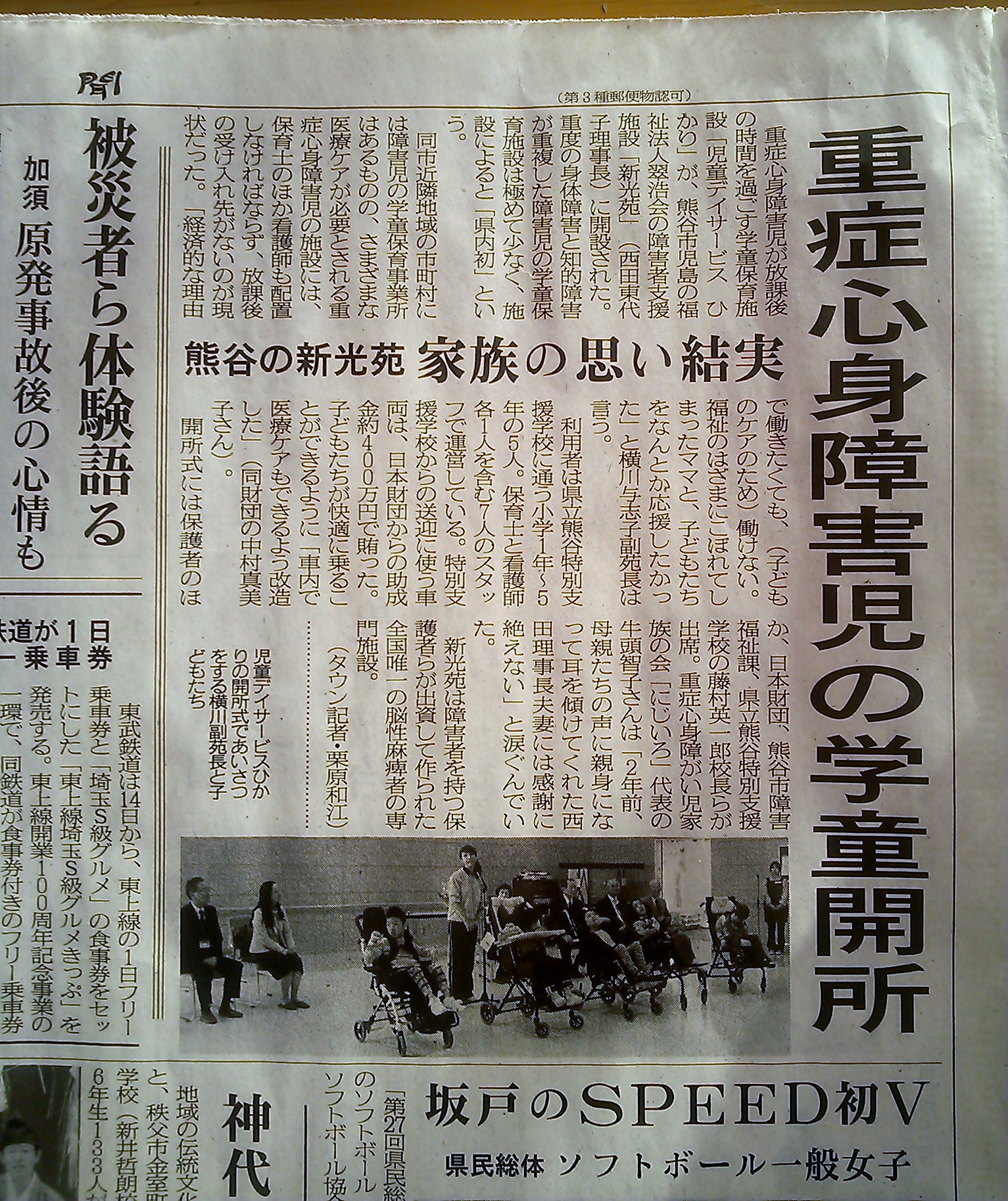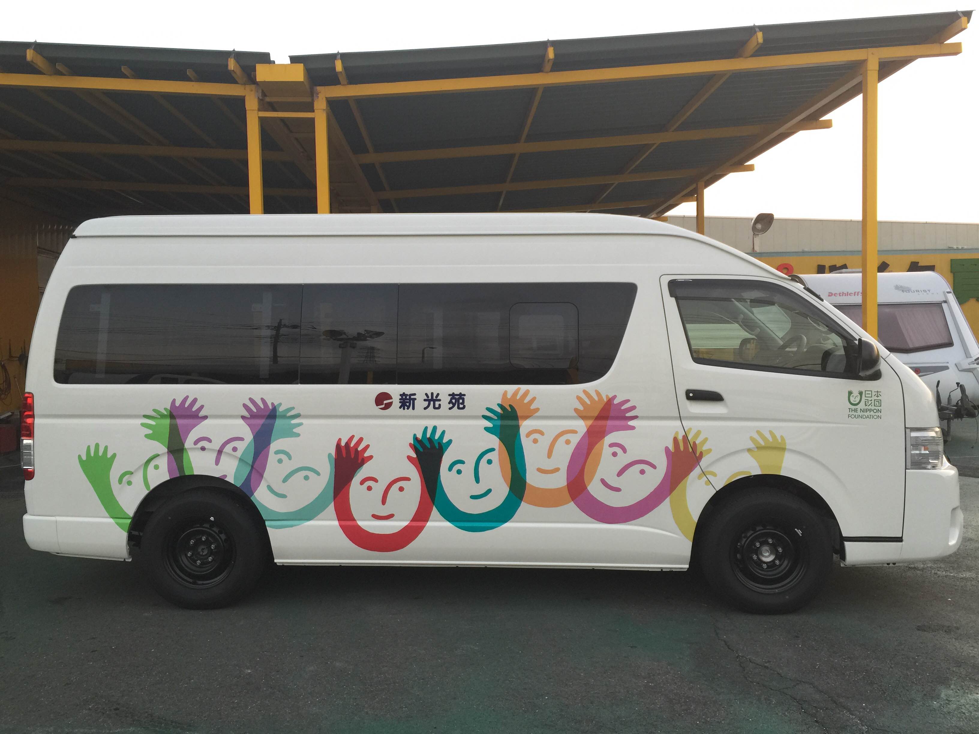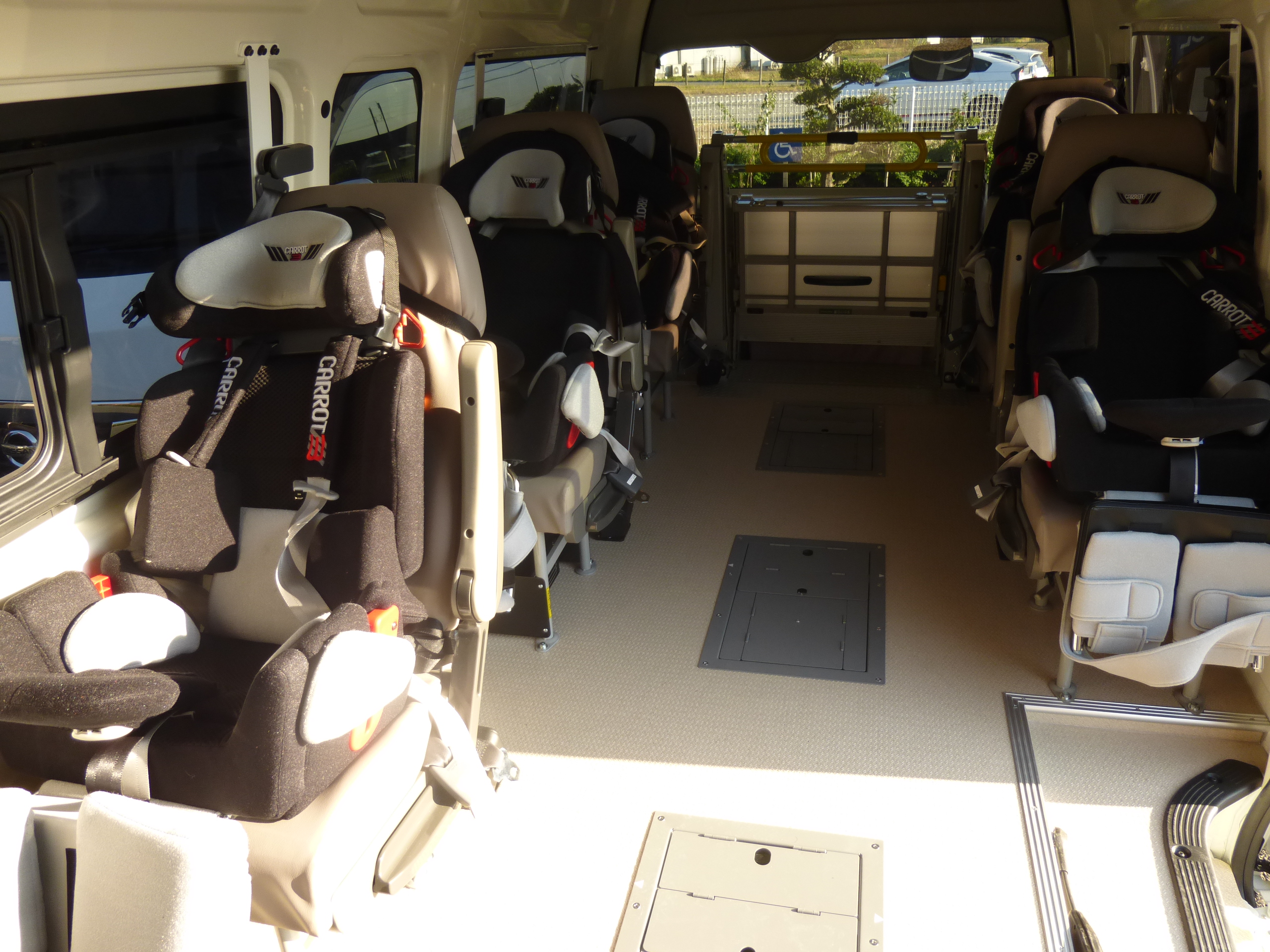 近隣にある熊谷特別支援学校の保護者の要請により、放課後等ディサービス事業を開始するために、送迎用の車両が必要であり、重症心身障害児5名を乗せるために5つのカーシートを装着し、途中で医療行為が必要な場合に対応できるスペースがある車両を整備することができた。