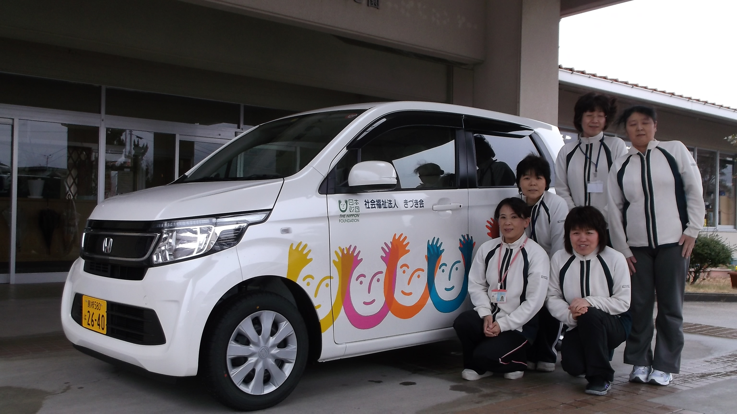 2.事業費総額 563,000円 3.助 成 金 額 450,000円 4.事業目標の達成状況 平成27年度より地域包括ケアが始まり、今まで以上に在宅生活の継続を支援する必要性が 高まっています。その中で、当法人の訪問介護事業への重要性も増しています。本事業の実 施によって、僻地等への訪問が支障なく実施できることで、利用者のみならず、その地域の 安心につながり、地域福祉向上の牽引者の一人となる事が出来ます。 5.車 種 ホンダ NWGN 軽自動車 2WD/AT ガソリン 4名 1台 6.使 用 施 設 島根県 出雲市 大社町 杵築西 1643番地2 いなさ園ヘルパーステーション |
