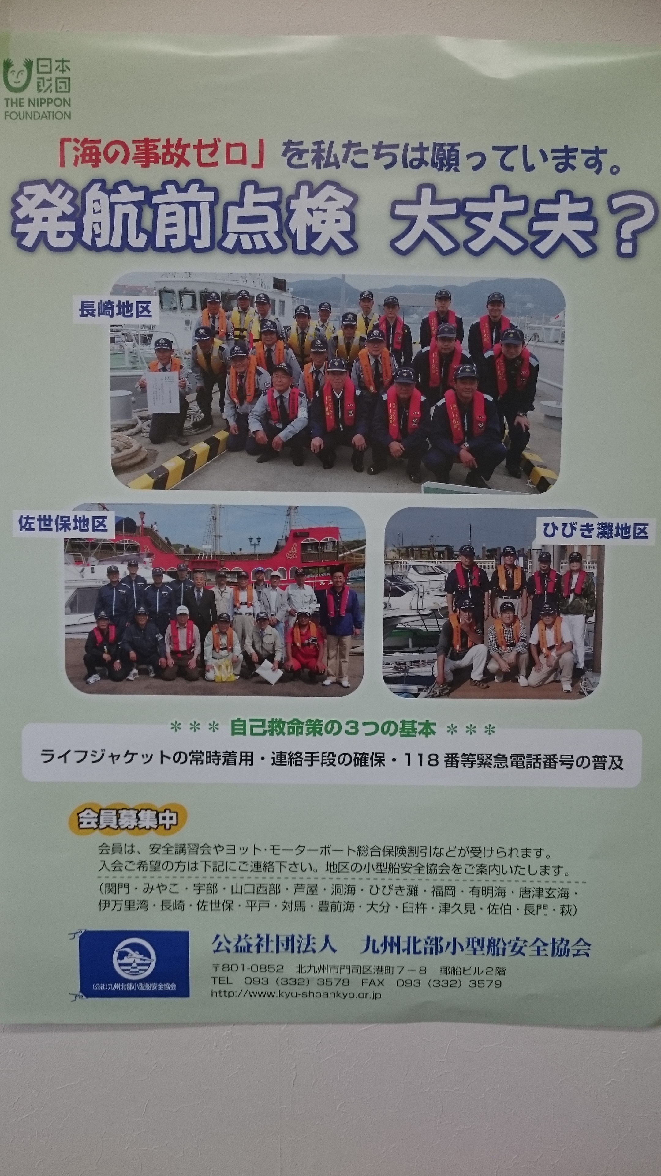 安全運航を啓蒙するため「発行前点検を忘れていませんか?」をテーマにサブタイトルとして『「海の事故ゼロ」を私たちは願っています。』を訴えるポスターを90部作成し、各小型船安全協会及び関係先へ掲示依頼を行った。