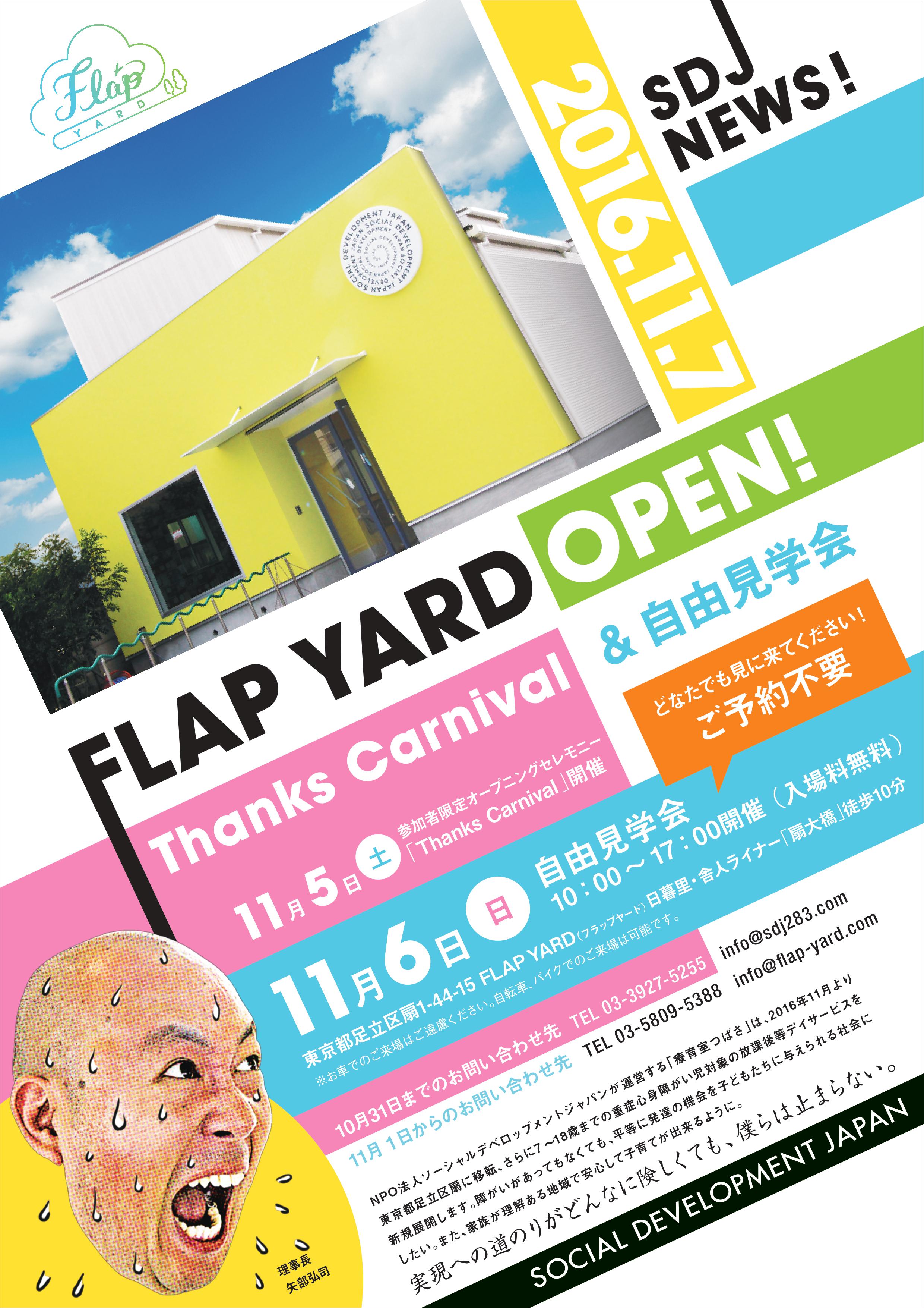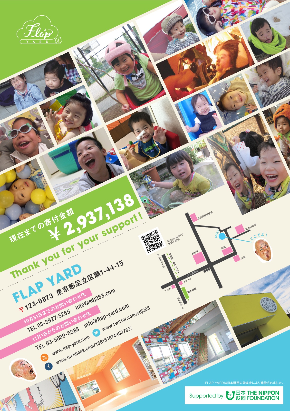 2016.4~2016.10に掛けて、重症心身障がい児のための通所施設「FLAP YARD」を東京都足立区に建設。建物建築費用の80%を公益財団法人日本財団が助成している。
