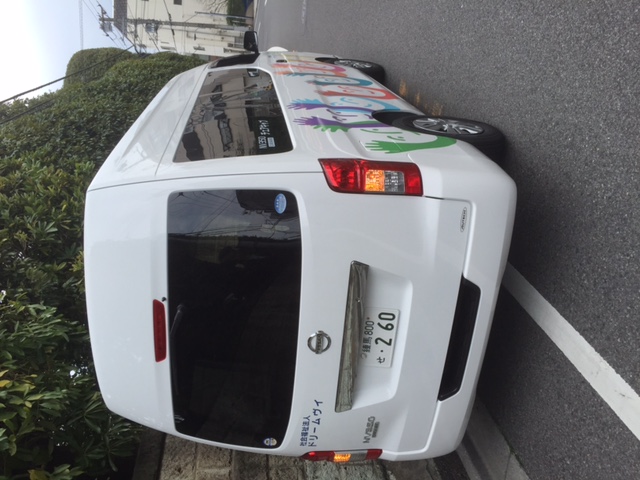 今般、車いす2名対応の福祉車両(ニッサンキャラバン)を貴財団のお力をお借りして取得することができました。当法人でははじめて車いす対応車をいただきましたので、利用者支援のサービスの広がりにつながり職員・利用者共々たいへん喜んでいます。早速、あらたに職員も福祉車両運転の講習に参加した者もおり、意識の向上につながっております。これからも引続き貴財団のお力添えをお願いいたします。購入車両の写真を添付いたします。