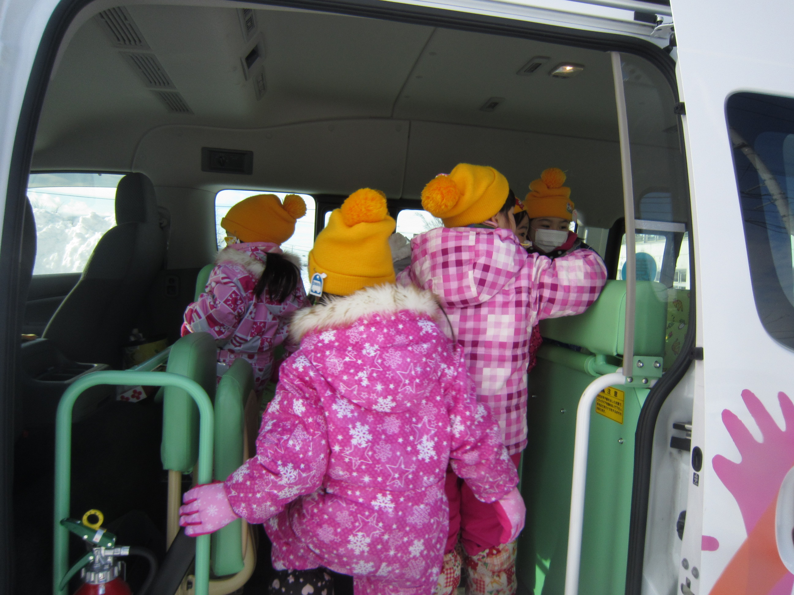 今回幼児用バスの整備により、園児の登園・降園が安全で安心して行えるようになり、園外保育(冬まつり見学、チューブ滑り等)や教育保育活動や高齢者施設の訪問等地域福祉に貢献することができました。