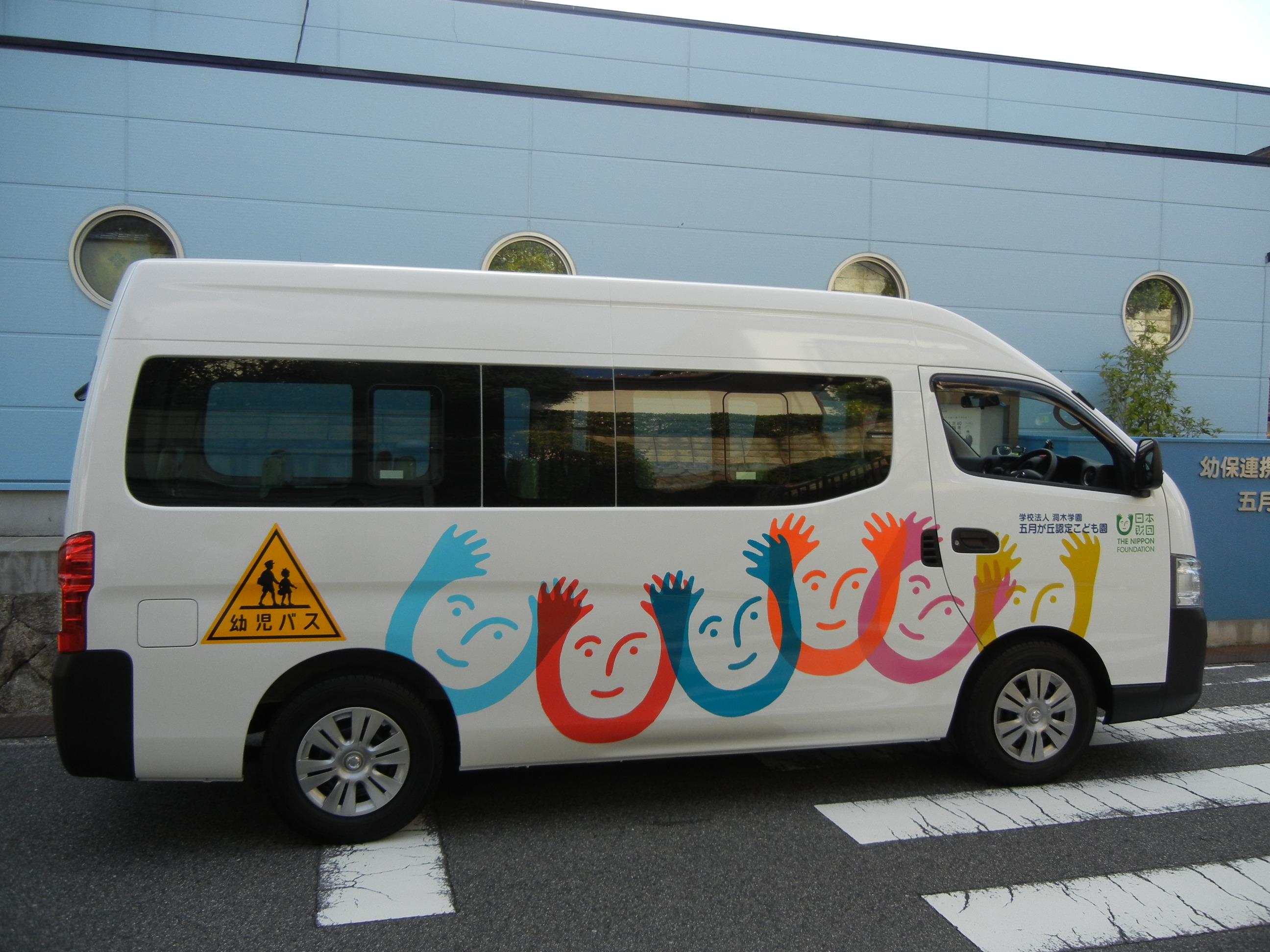 2.事業費総額 2,749,000円 3.助成金額 2,190,000円 4.車種 日産/キャラバン 普通車 2WD/AT ガソリン 大人4名+幼児18名 5.使用施設 五月が丘認定こども園 6.事業完了日 2016年3月24日 7.事業目標の達成状況 当法人は教育・保育を一体的に行う施設として、地域に密着した様々な福祉サービスの提供が求められてい る。園児の送迎に関しても、多地域から園児が通園している。本事業の実施により、より安定したサービスの 提供ができ、個々のニーズに合った教育・保育を提供し、子育て支援・地域福祉の向上に貢献することができ る。 |
