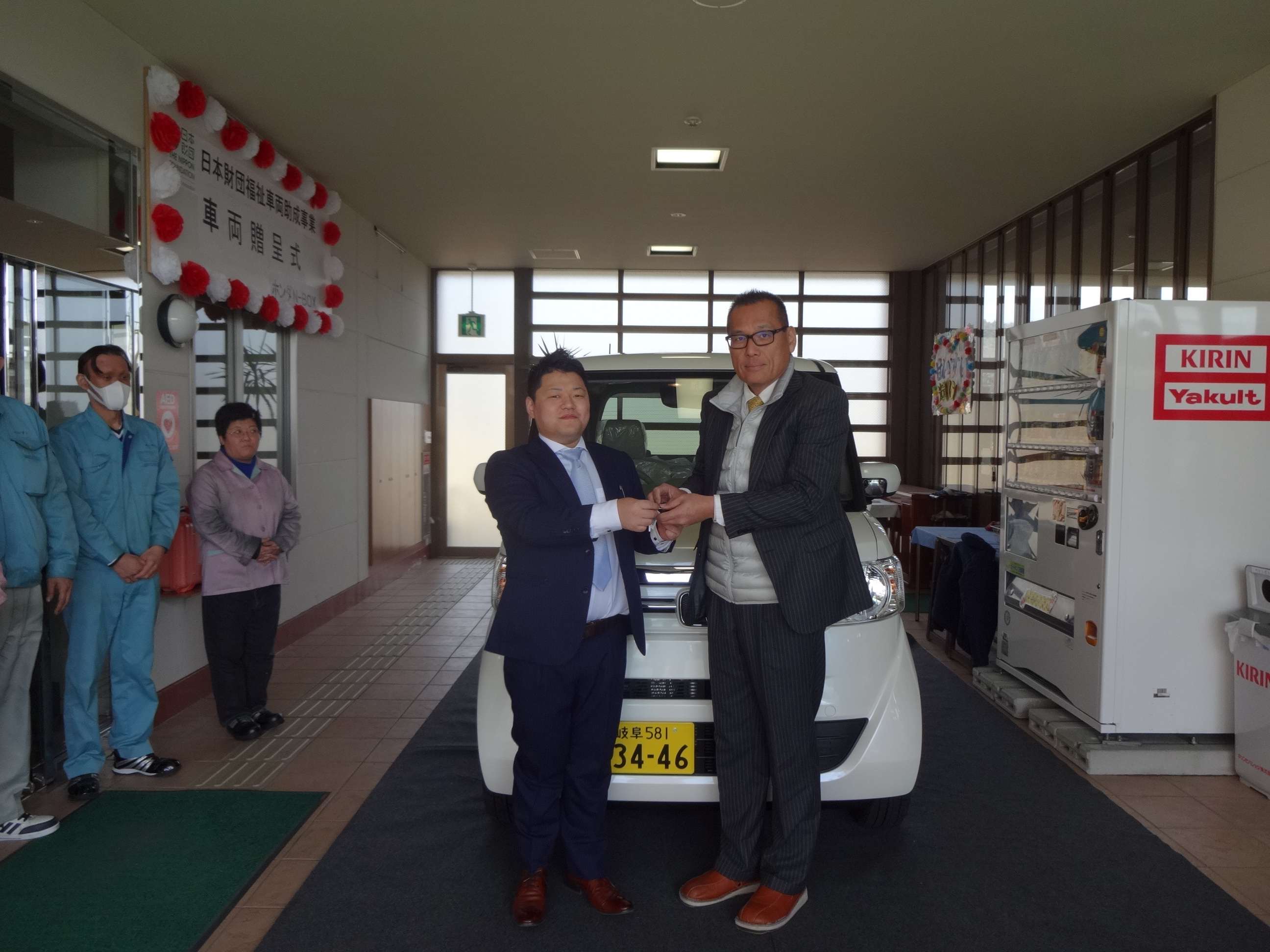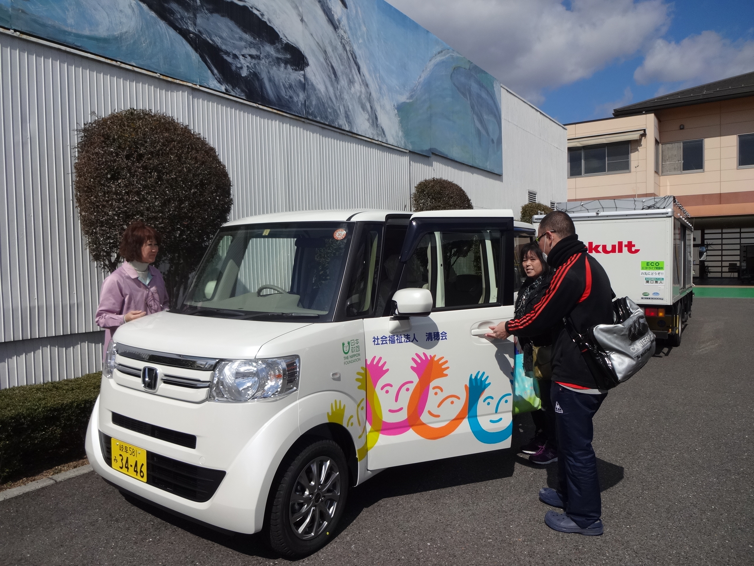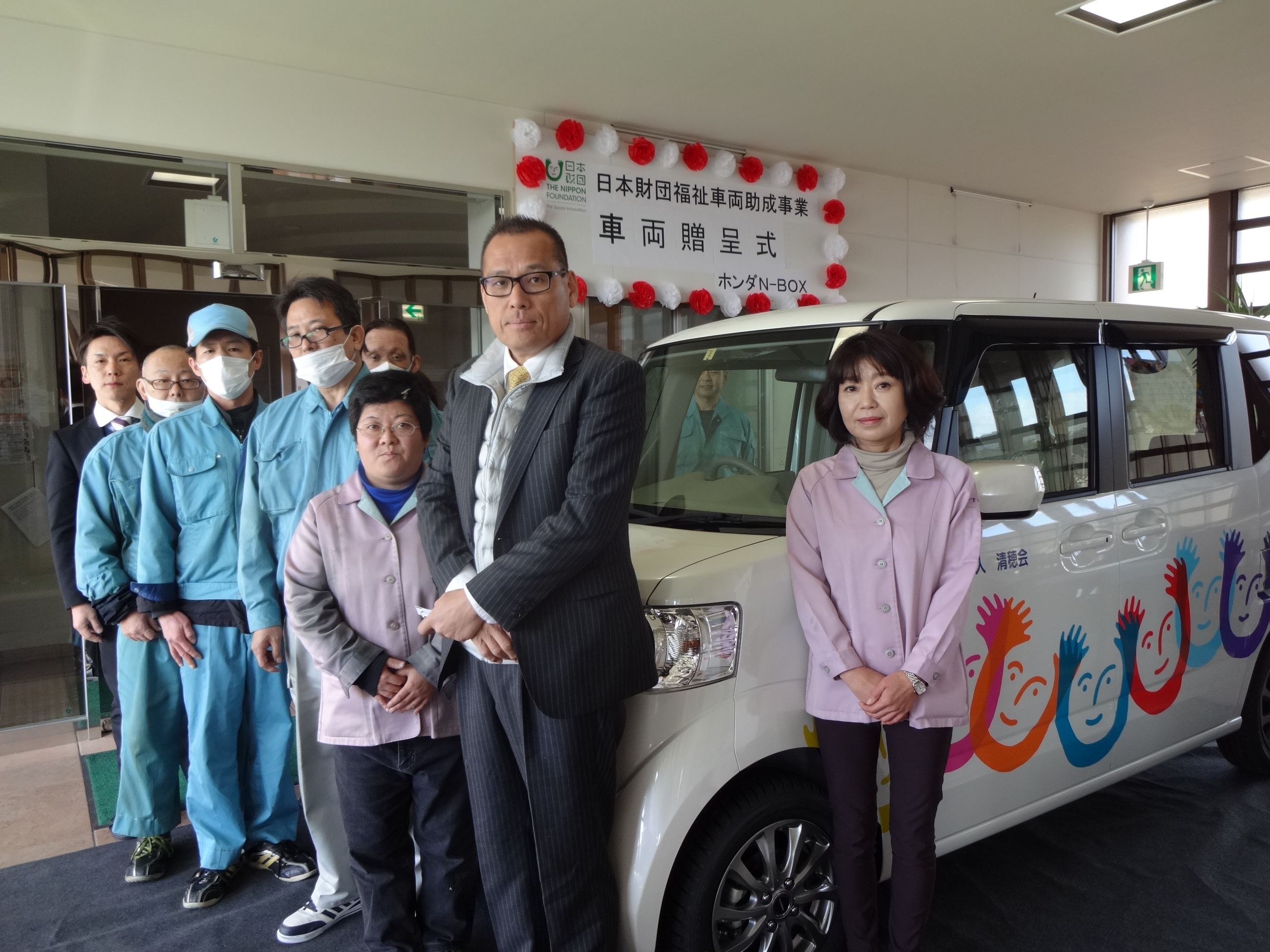 2.事業費総額 799,000円 3.助成金額 630,000円 4.車種 ホンダ N-BOX 軽自動車 AT ガソリン 1台 5.使用施設 就労継続支援A型・B型 石谷事業所 6.事業目標の達成状況 車輌を配備したことにより、利用者様の効率的で安定した送迎サービスの提供が 可能となりました。また、レクレーション活動の幅も広がり、利用者様に喜んで頂いています。 |