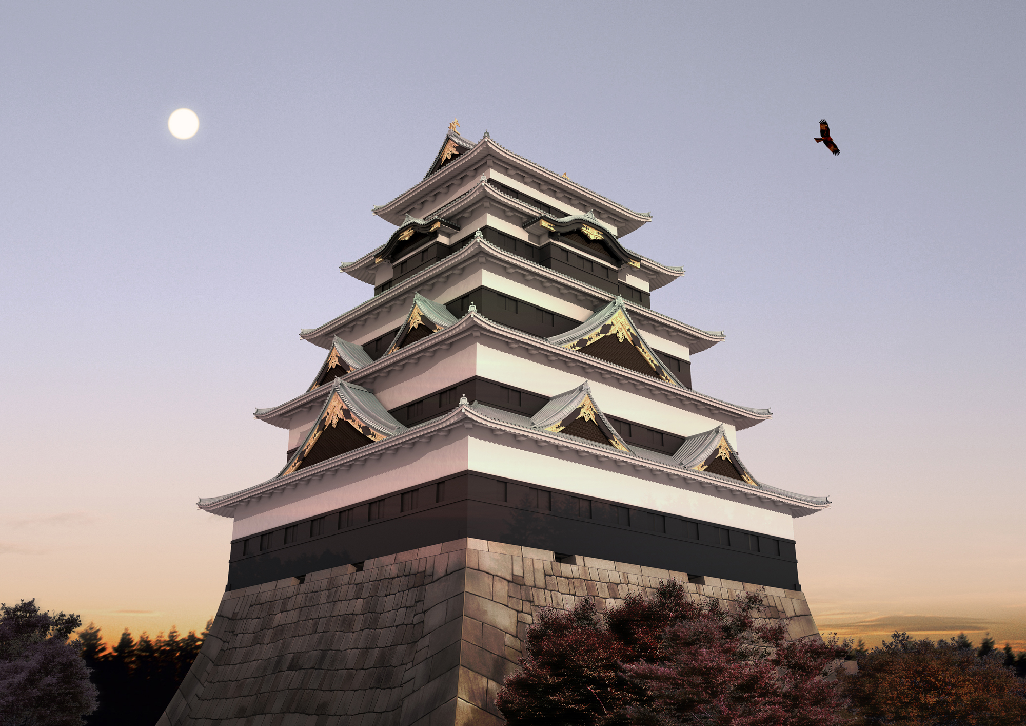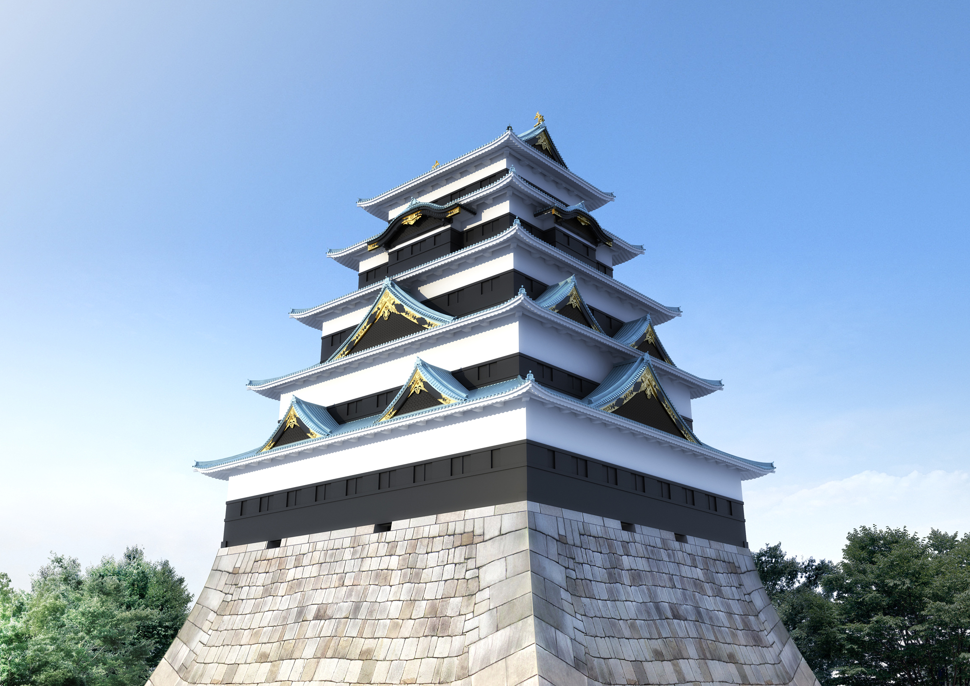 「江戸城寛永度天守 建地割図」を基に、史実に忠実に研究・復元されたCG画。 ・平成22年5月に完成し、同年11月に広くマスコミ等に発表する報告会を開催した。 |
