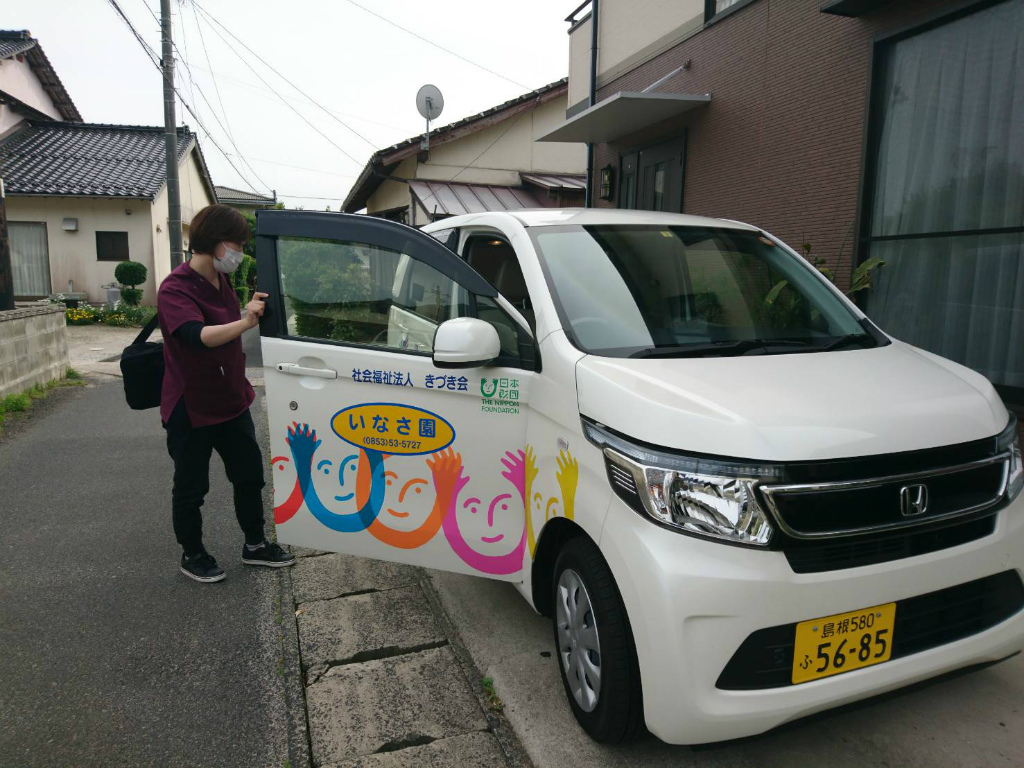 2.事業費総額 625,200円 3.助 成 金 額 430,000円 4.事業目標の達成状況 訪問看護事業所専用の車両を確保する事により、訪問先の状況や時間帯に合わせて調整が可能となり、全 体として、訪問件数の増改に繋がった。また、緊急時の訪問対応も適時対応できる確率が向上し、特に地域 的にターミナル対応のケースが多い中、利用者、その家族からの信頼や安心を得られたとの声や医療サービ ス事業者から指名依頼が増えるなど、職員への意欲向上につながる多くの効果がもたらされた。 5.車 種 ホンダ NWGN 軽自動車 2WD/AT ガソリン 4名 1台 6.使 用 施 設 島根県 出雲市 大社町 杵築西 1643番地2 いなさ園訪問看護ステーション |