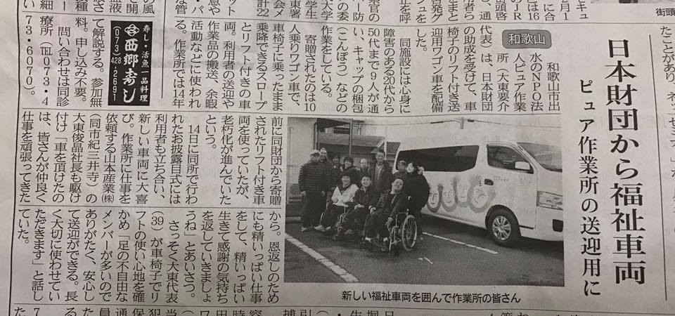 2017年2月に日本財団様より福祉車両の購入助成をして頂きました。