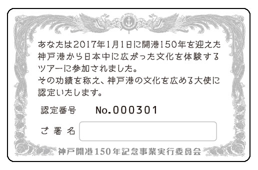 KOBEみなと倶楽部文化大使認定証