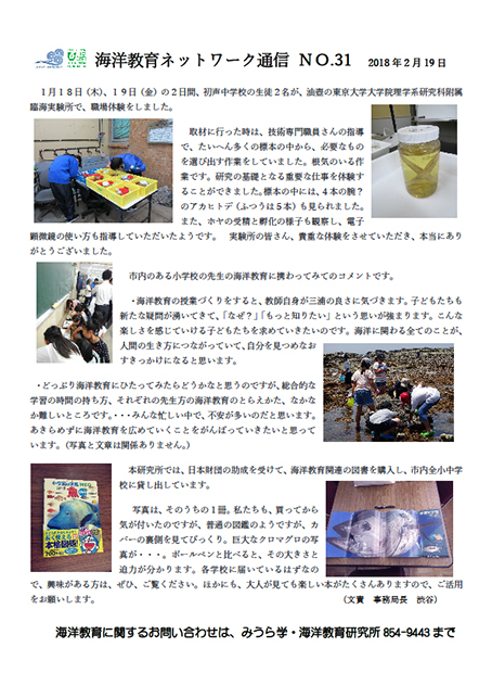 海洋教育の取り組みについて、三浦市内の全教職員に配布しているネットワーク通信です。