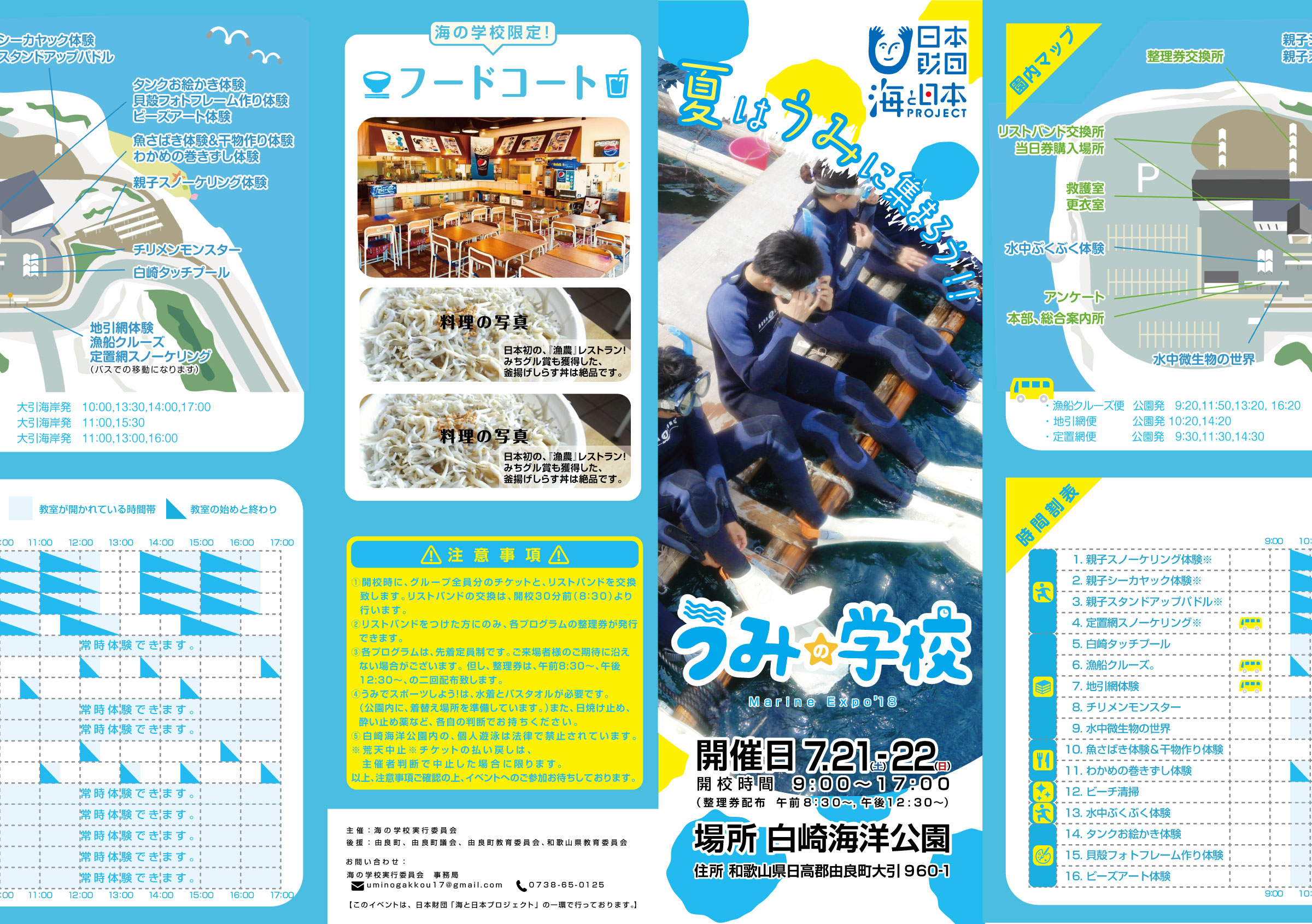 ・イベント用ポスター ・イベント用チラシ表、裏 ・イベント用パンフレット表、裏 ・うみの学校公式ホームページ ・うみの学校公式Facebookページ |