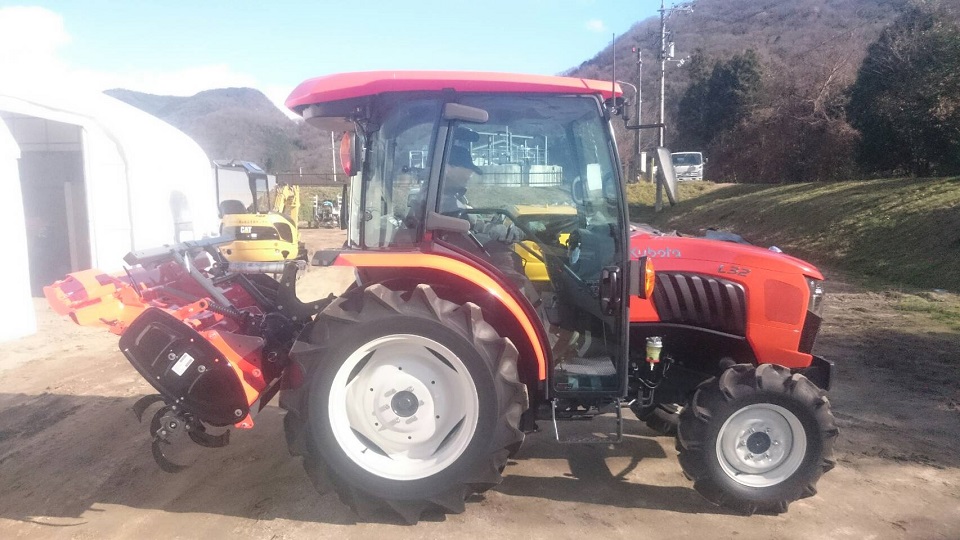 就労支援作業による堆肥・土作り:ホイールローダ 2018年7月の西日本豪雨災害により圃場が被害にあい、復旧作業のため圃場整備などに主に使用しています。 |