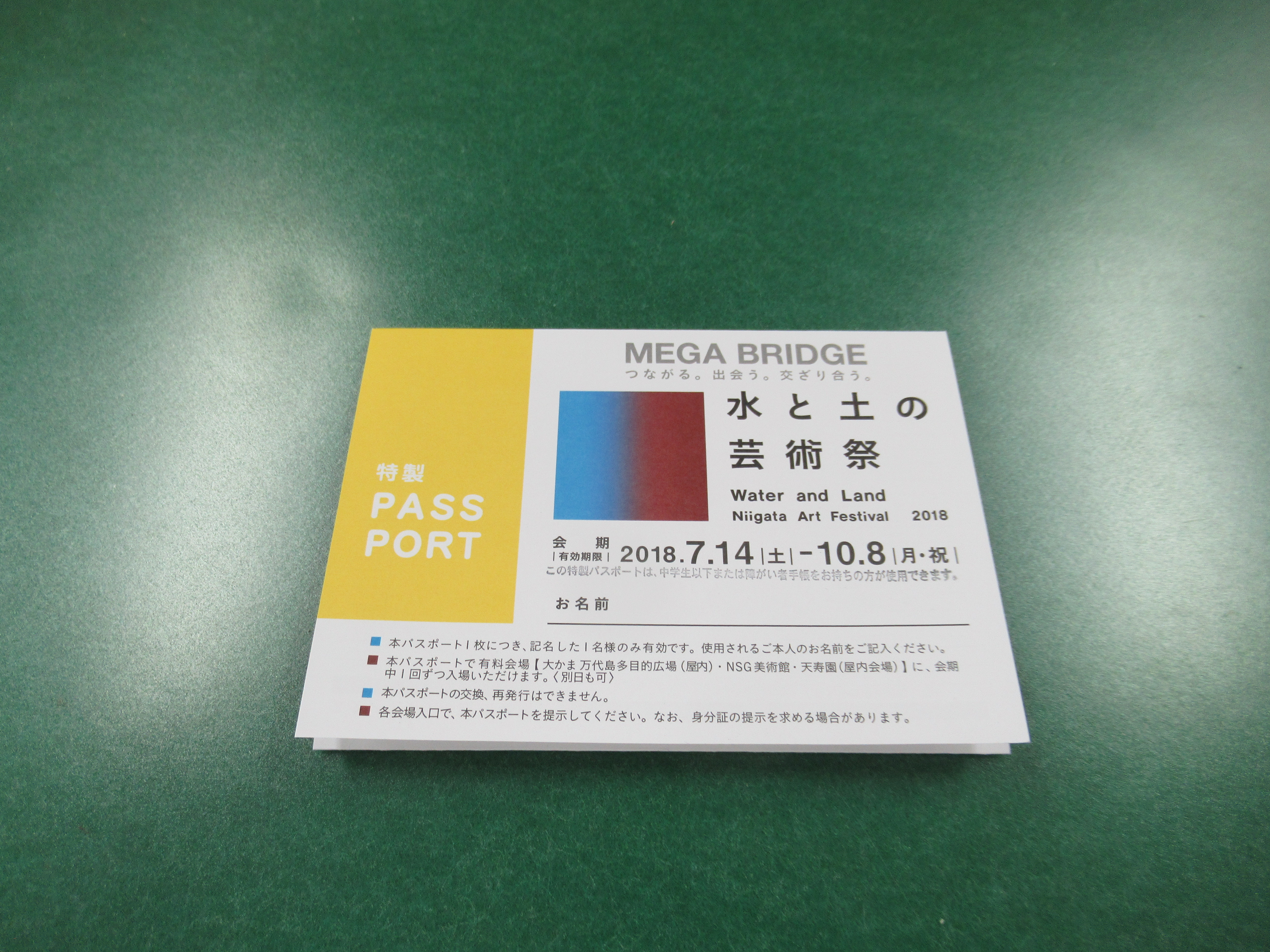小中学生および障がい者が、芸術祭の有料会場に無料で入れるパスポート。スタンプラリーシートも兼ねており、スタンプを集めながら作品を巡ることができた。
