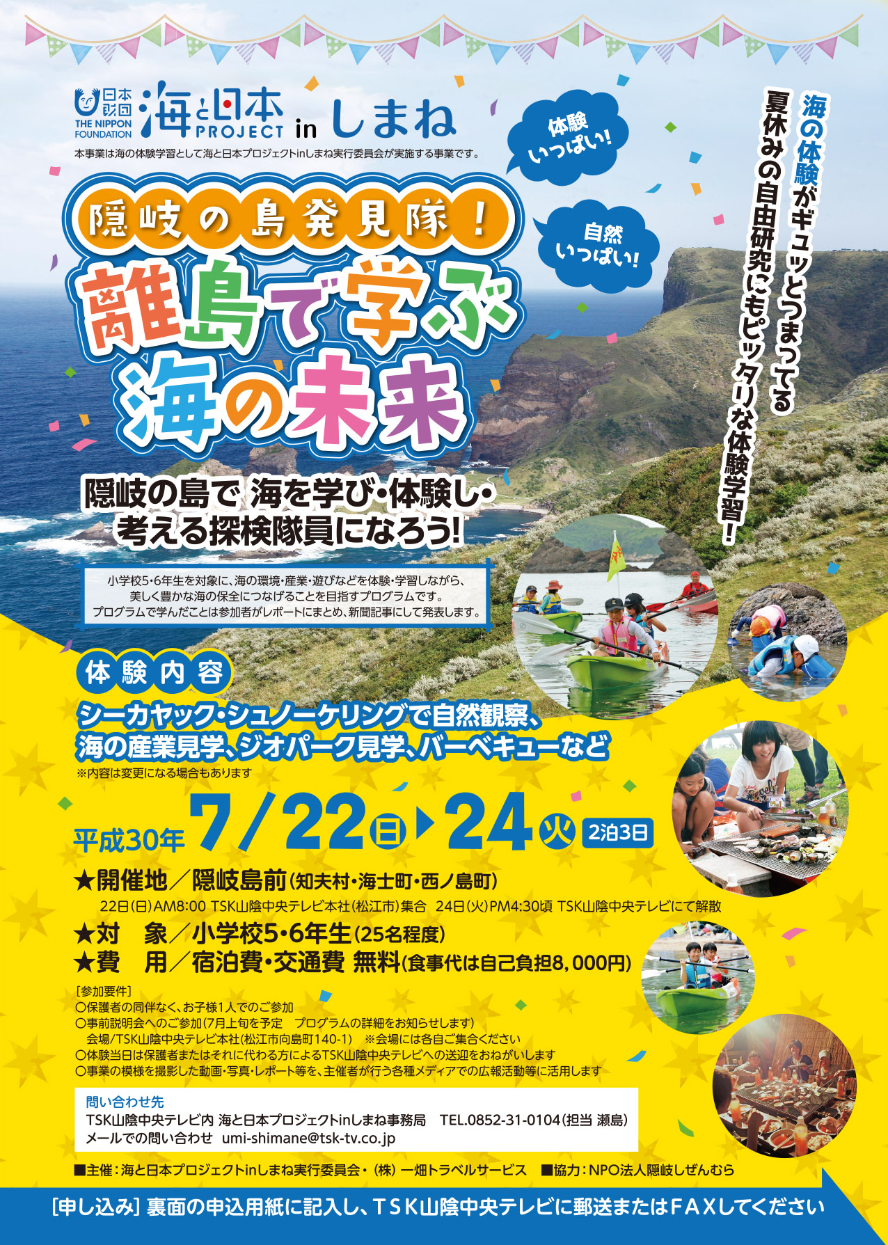 ①オリジナルイベント「隠岐の島発見隊!離島で学ぶ海の未来」小学校高学年が参加した海の体験学習