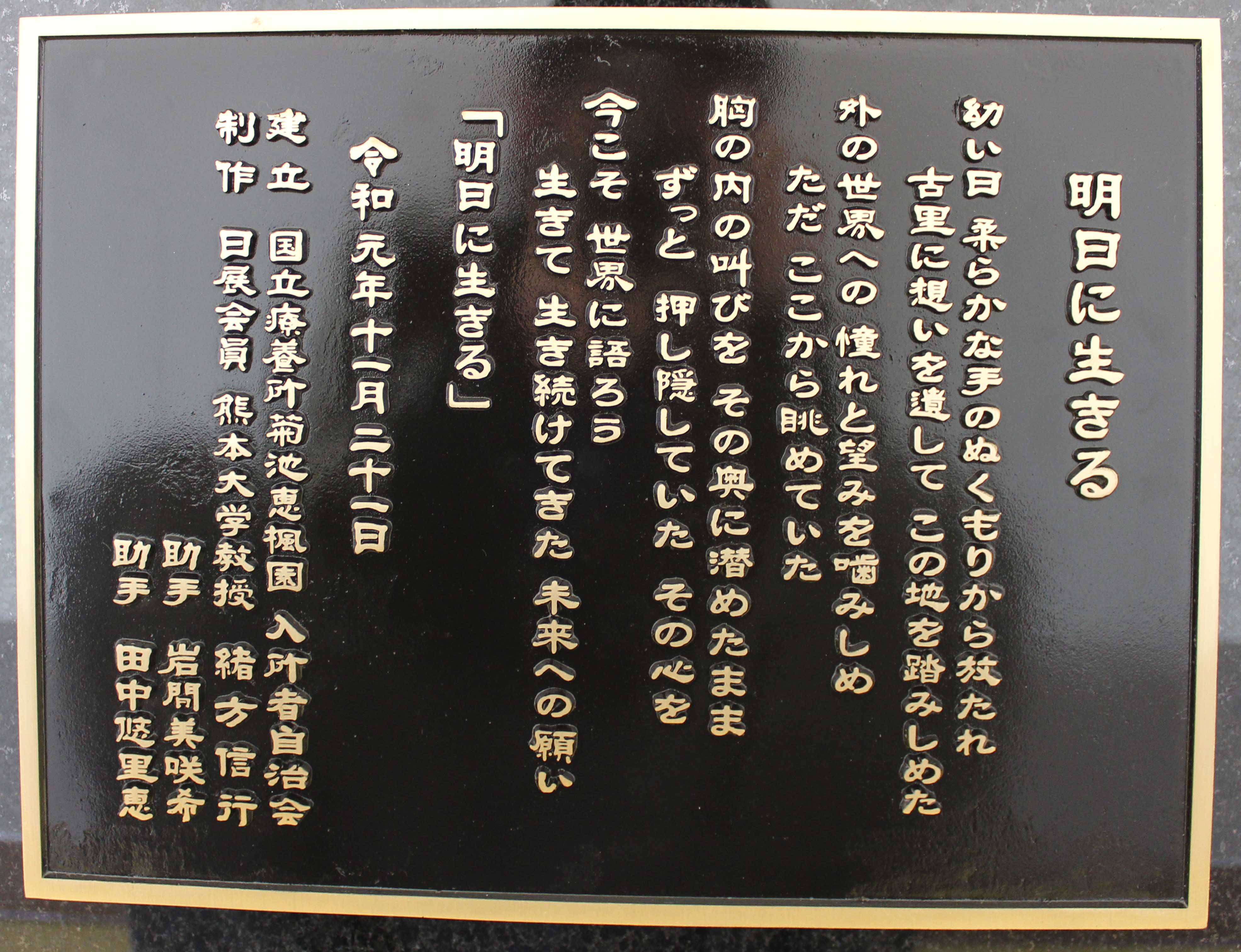 2019年度国立療養所菊池恵楓園入所者自治会事業ブロンズモニュメント「明日に生きる」