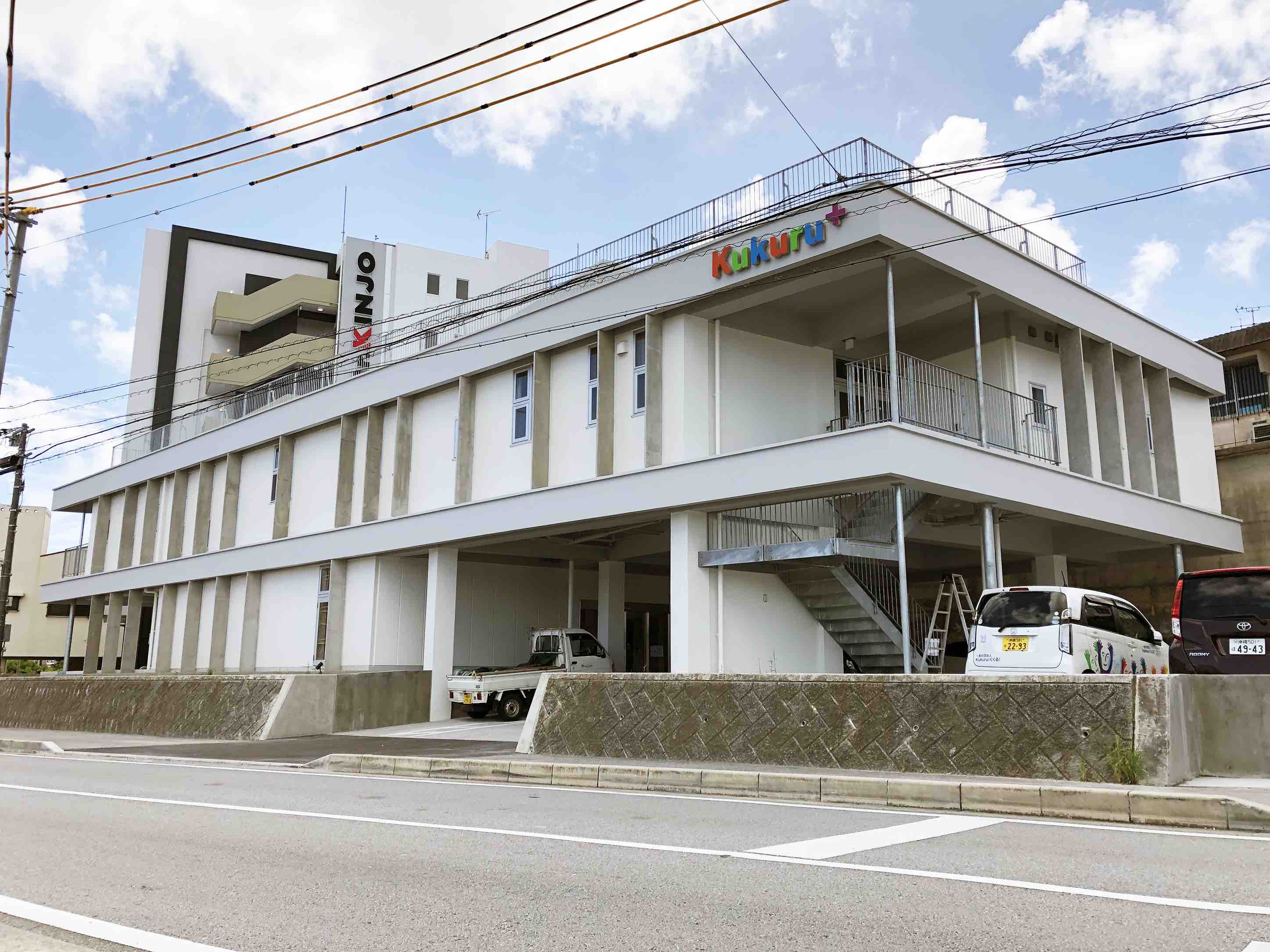 施設名称 Kukuru+(くくるプラス) 整備場所 沖縄県那覇市字真地216番地17 面積 敷地面積780.58m2、延床面積772.51m2 構造 鉄筋コンクリート造3階建 施設概要 医療型短期入所病室、退院移行支援病室、通所スペース、 診療所、カフェ、訪問看護・介護ステーション事務所、 多目的スペース、相談室、トイレ、駐車場、他 |