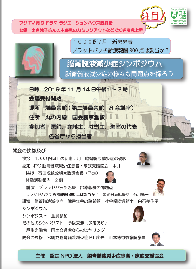 2019年度 脳脊髄液減少症シンポジウム議員会館 事業報告書