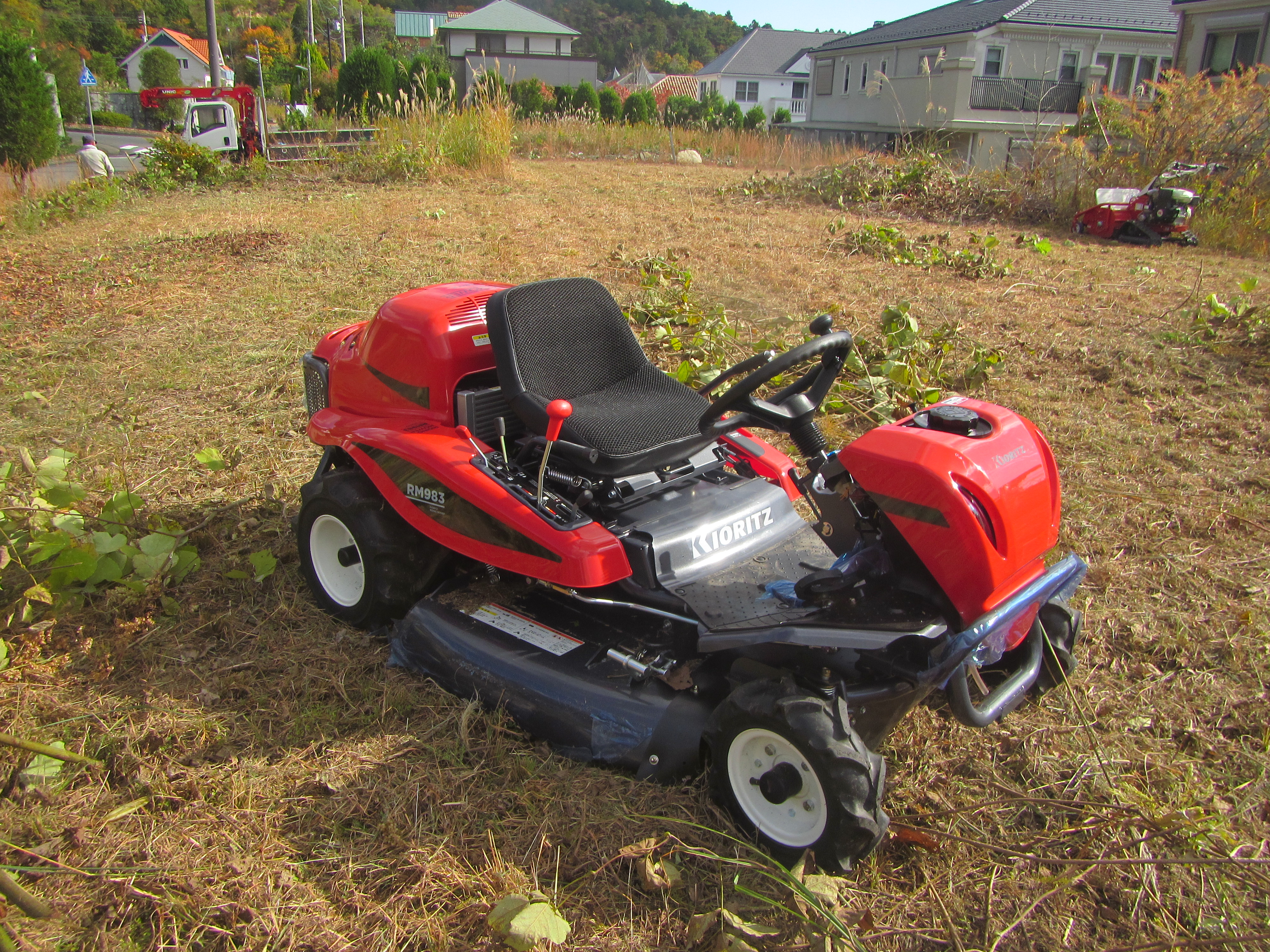自走・乗用草刈機を導入後に早速現場の作業で使用したところ、3日間の作業を2日間で終えることが