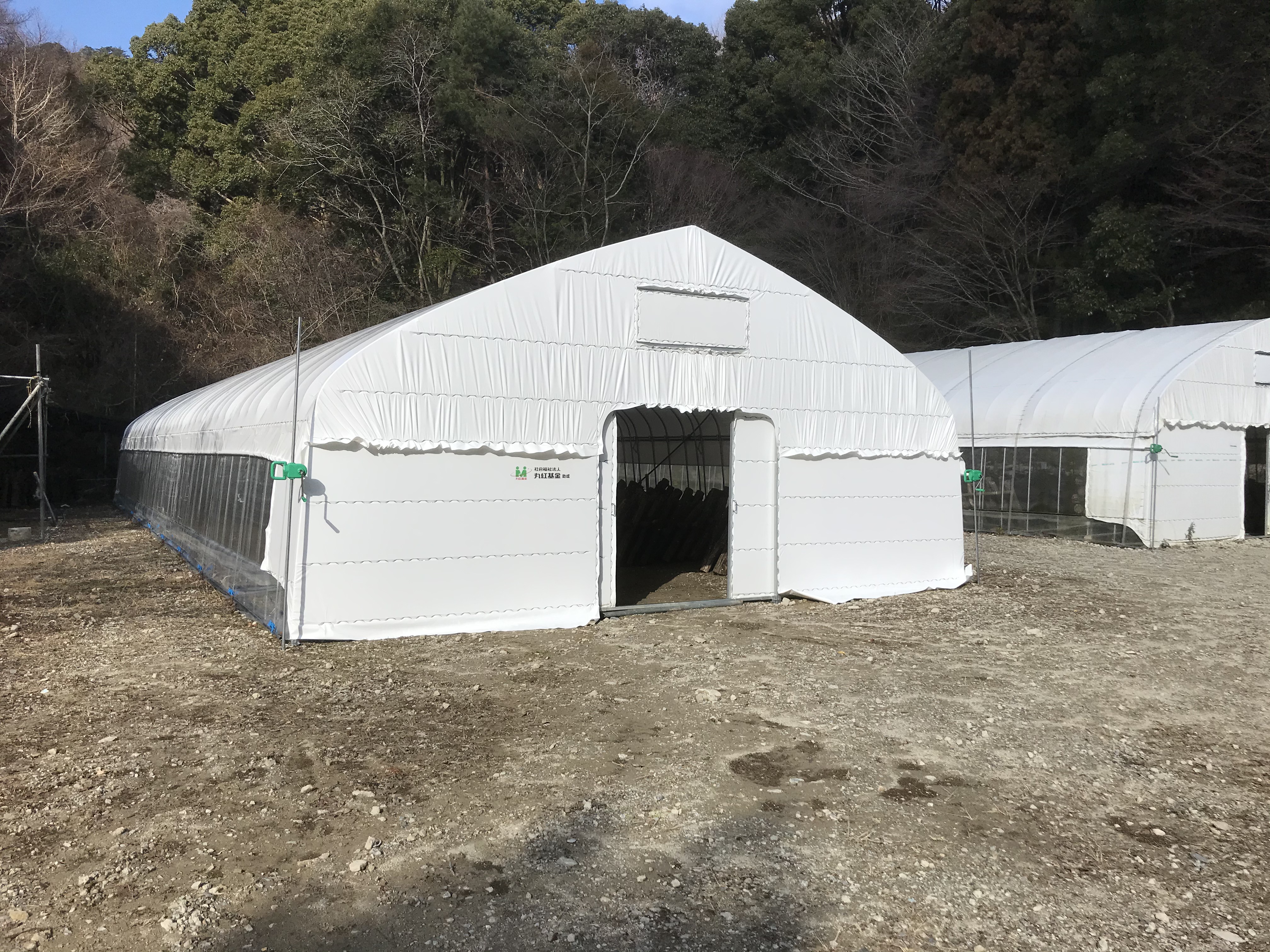 ビニールハウス3棟目の設置工事は自動散水装置付きで2020年4月に完了しました。