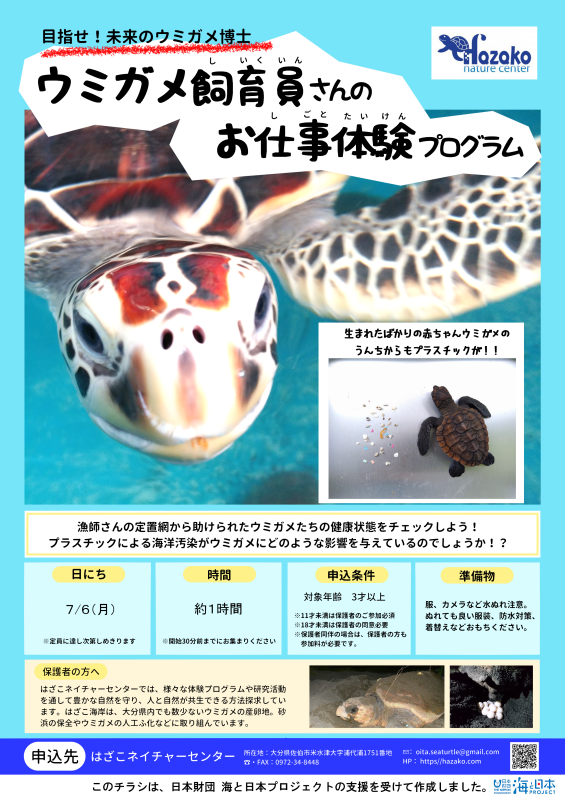 ・ウミガメ飼育員さんのおしごと体験(300部×3パターン) |