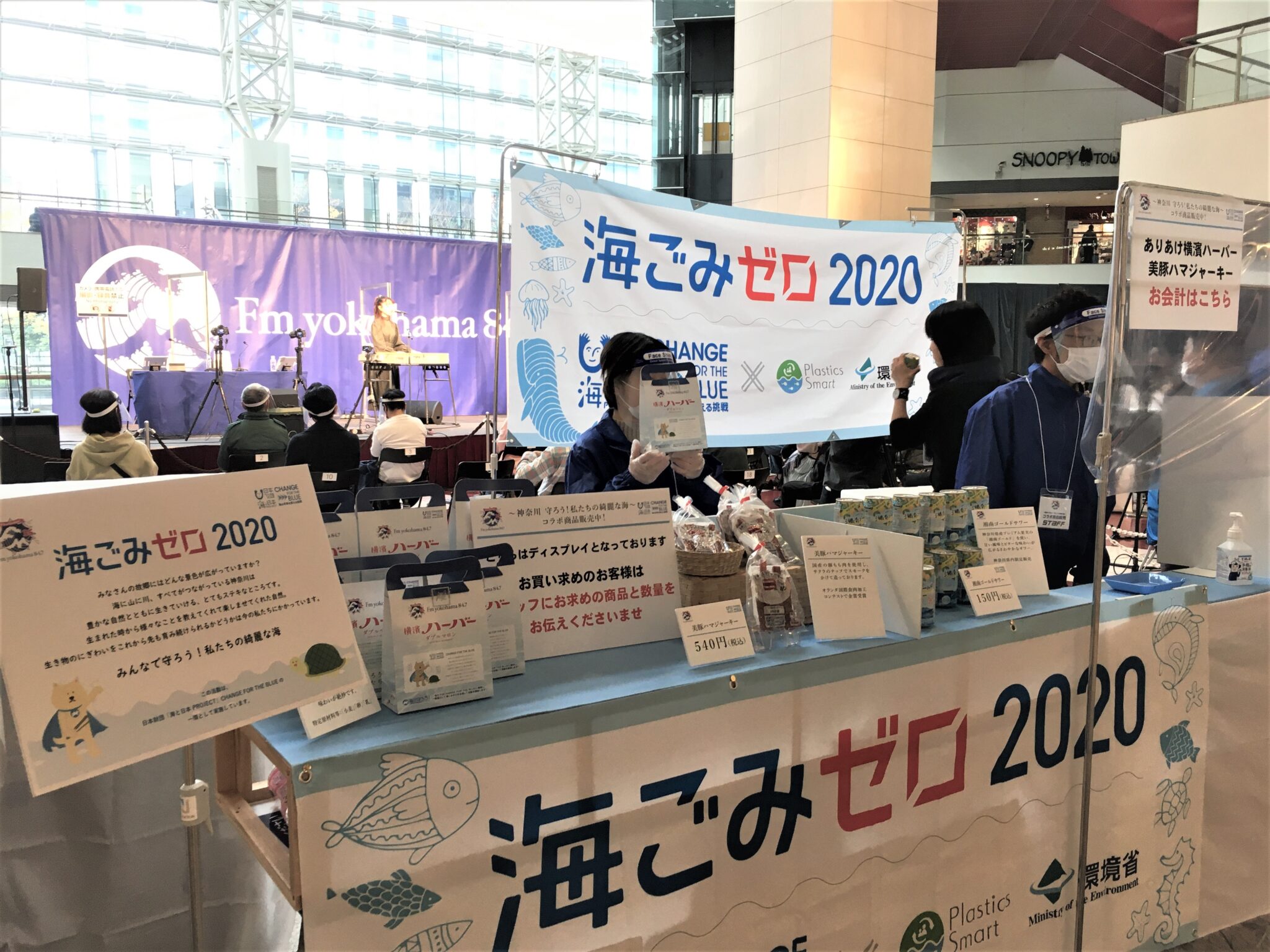 みなとみらい駅近くのクイーンズスクエアで開催されたFMヨコハマ35周年記念イベントで、タイアップ商品を展示、販売する事により成果物を広くPRする。