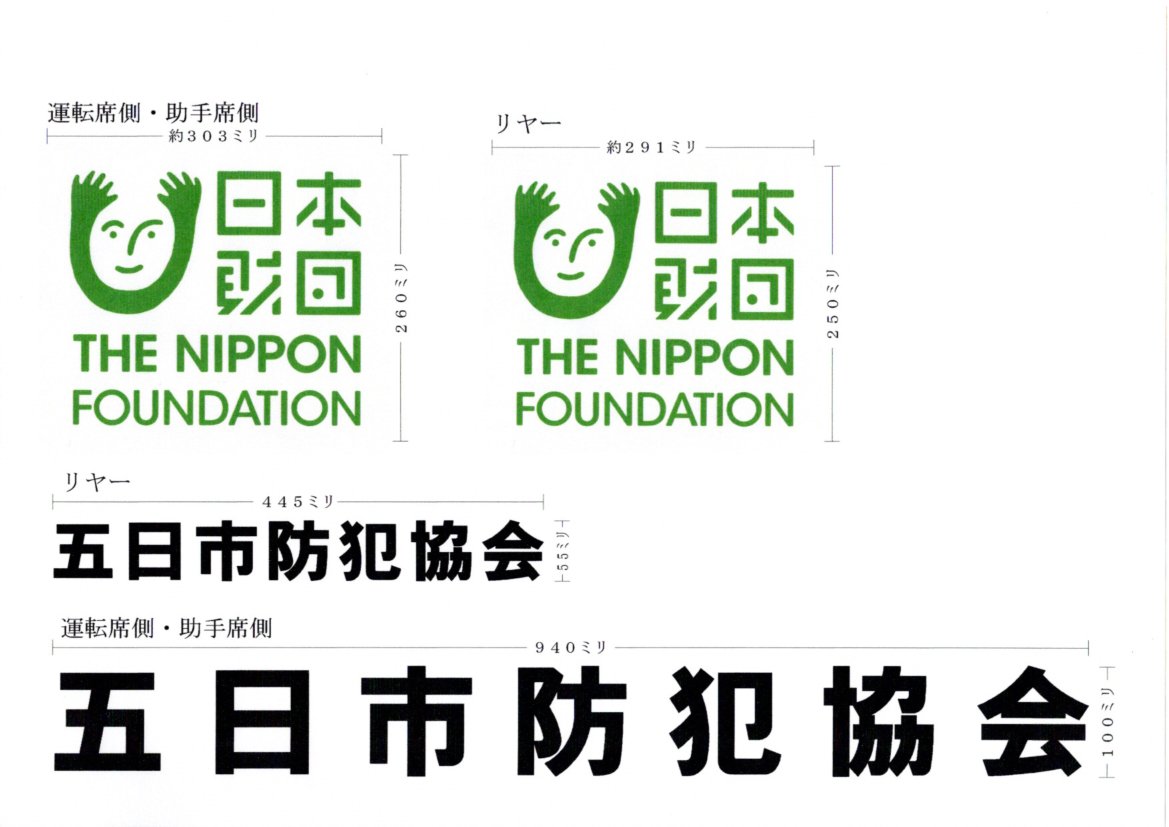 日本財団指定のデザインを塗装した青色パトロール車
