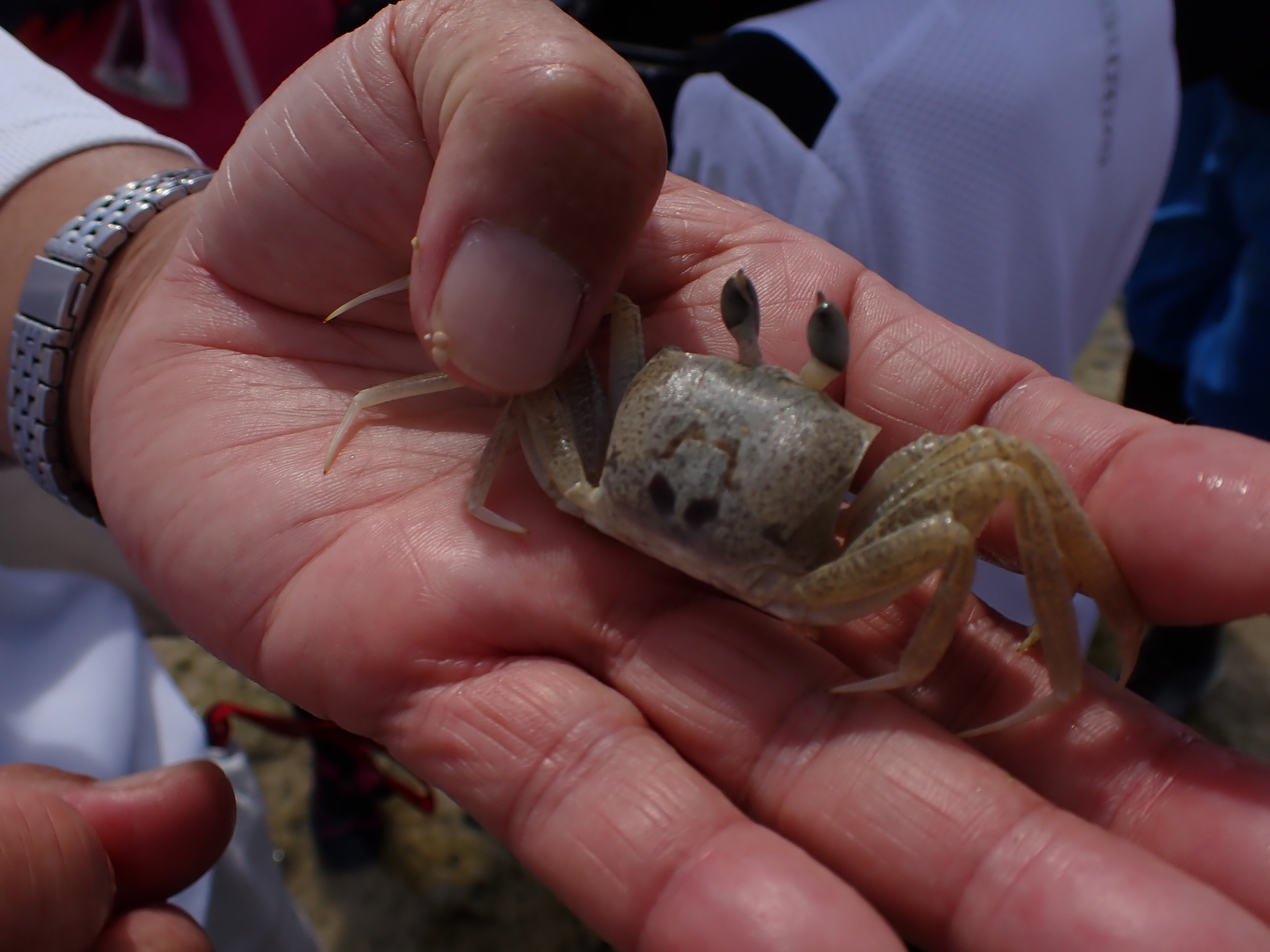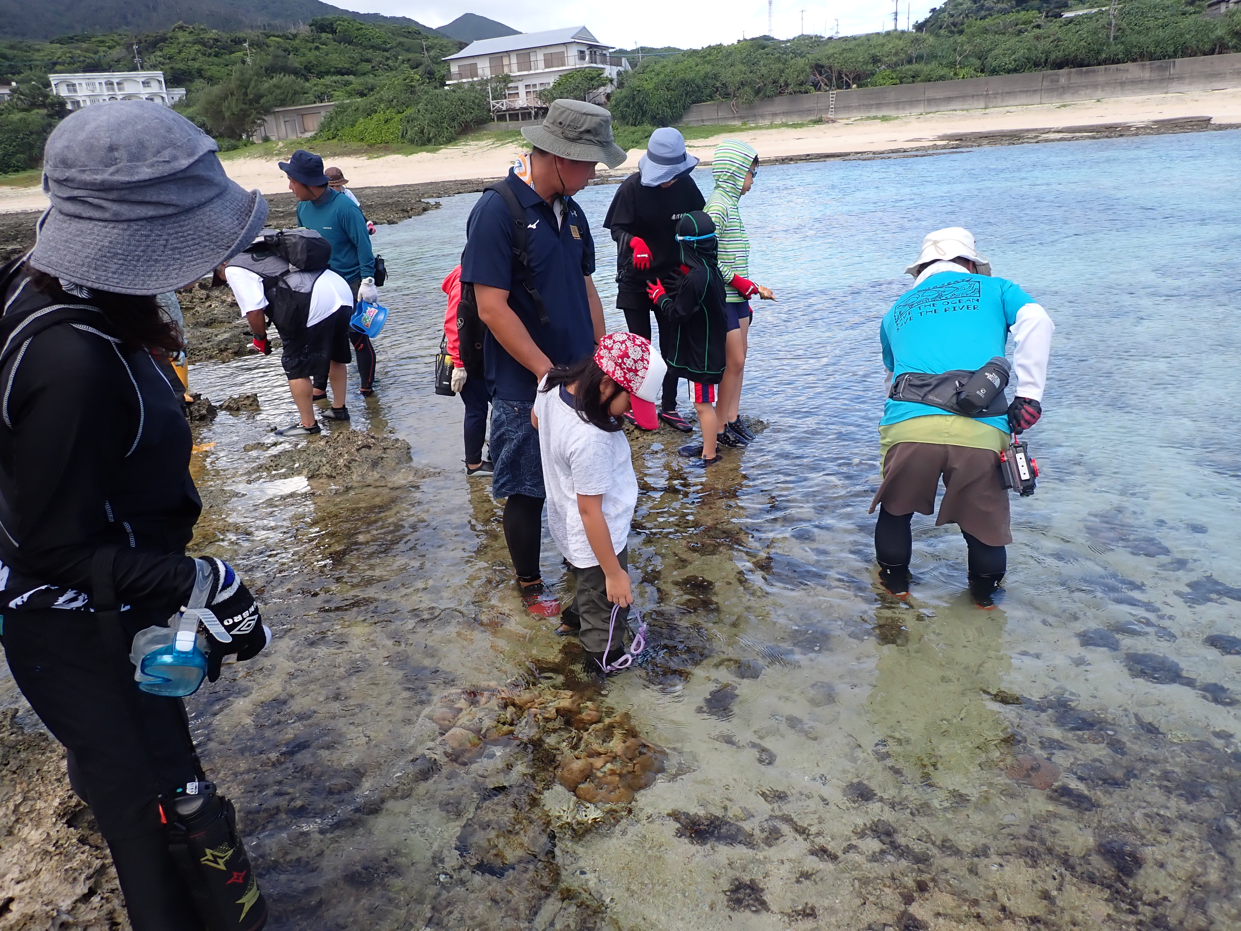 そこで、この金見のイノーをフィールドとして、生物の専門家の指導の下で生物調査の活動を行いました。 その活動の、様子です。 |