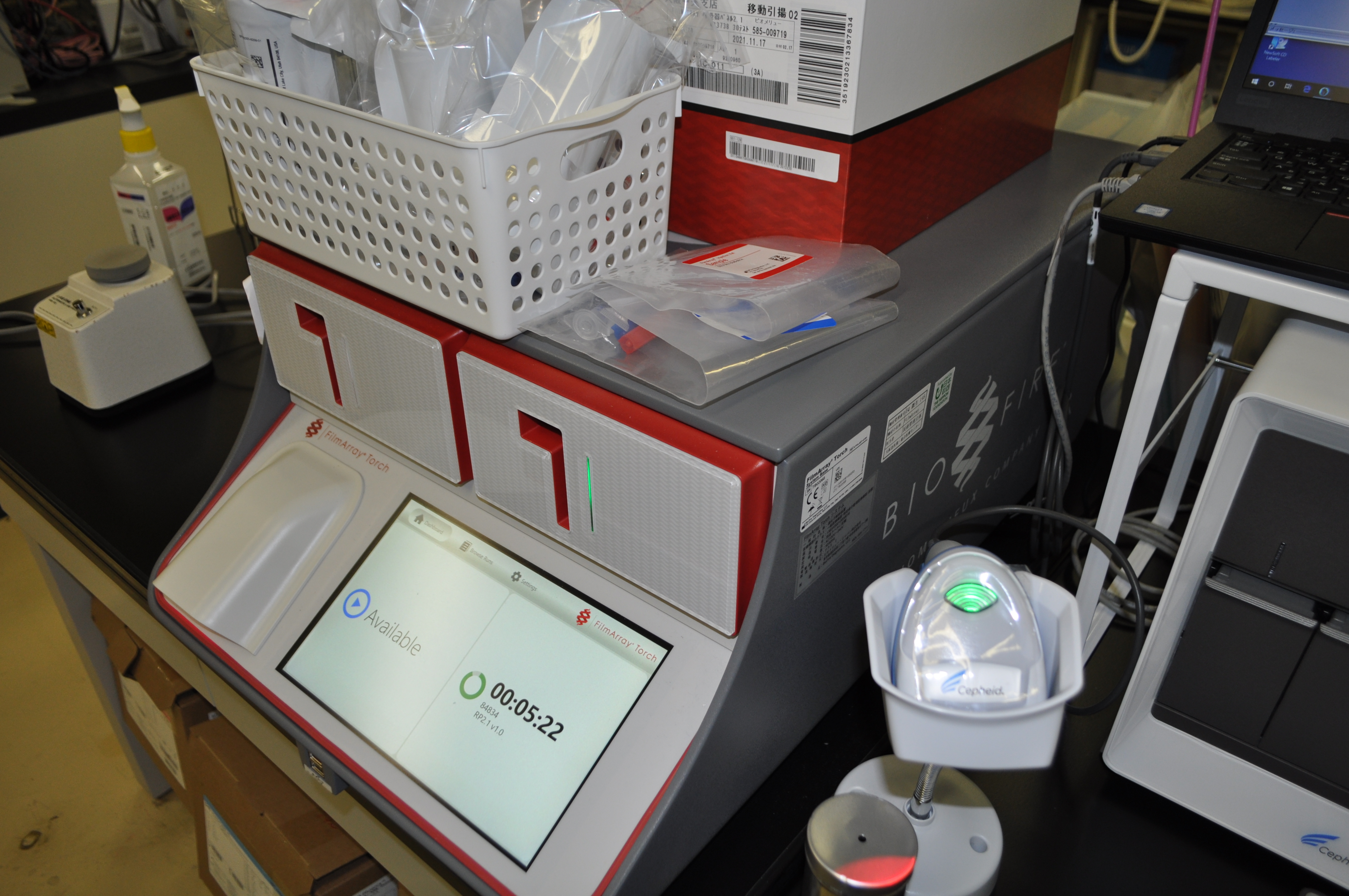 (1)アプリ 一式 (2)ビデオ喉頭鏡 1台 (3)マット型加温式ブランケット 一式 (4)検査機器(凝固異常) 一式 (5)オゾン消毒器 1台 (6)エコー 1台 (7)PCR検査機器 1台 (8)N95フィッティングチェック 2台 (9)ポータブル撮影機 1台 (10)ベッドサイドモニタ 6台 このうち、写真については(2)(7)(9)(10)を抜粋して順に掲載 |