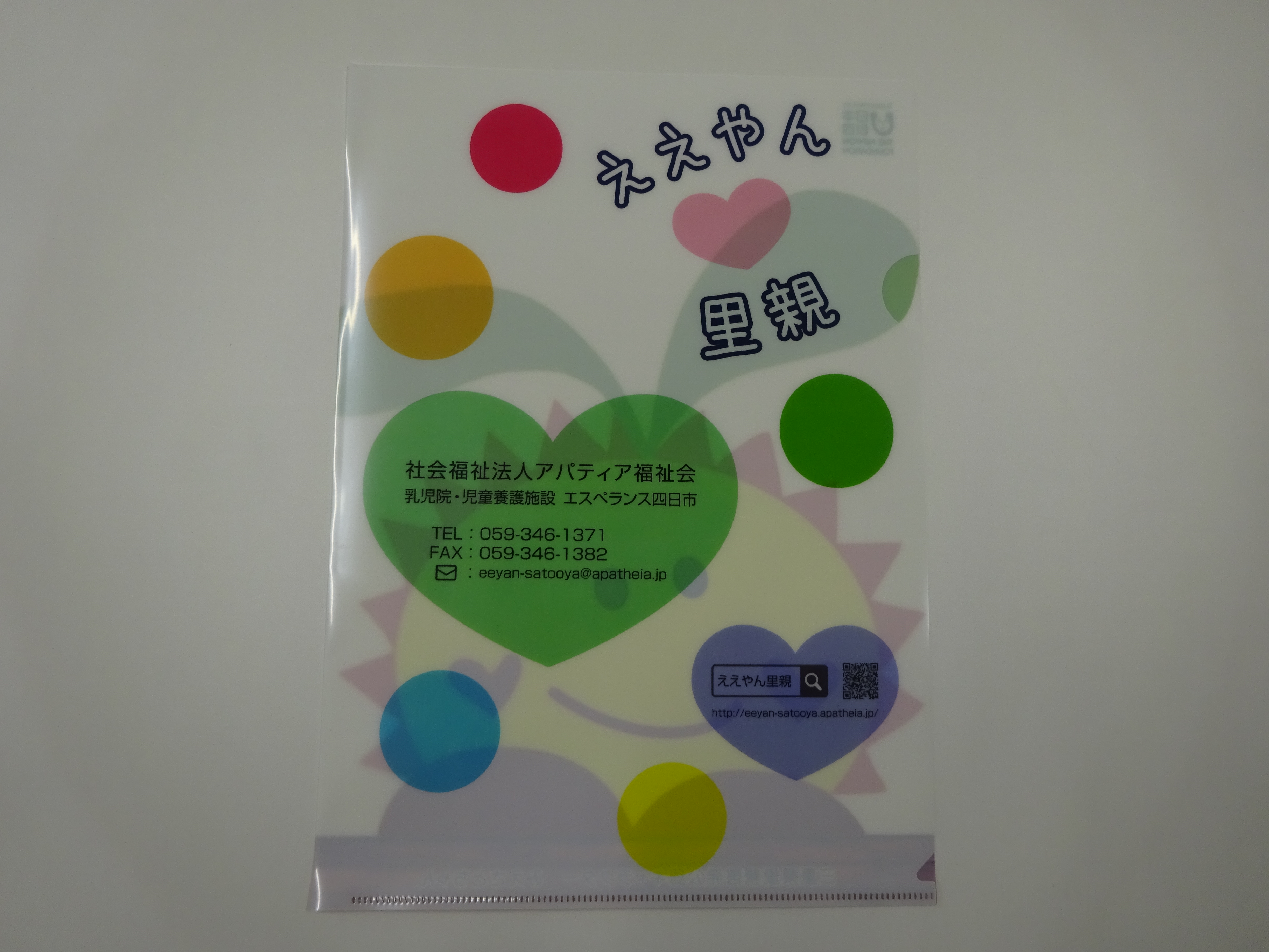 里親に関するイベントや説明会で、私たちの活動を広く普及するために作成。 <啓発グッズ> ・クリアファイル ・エコバッグ |