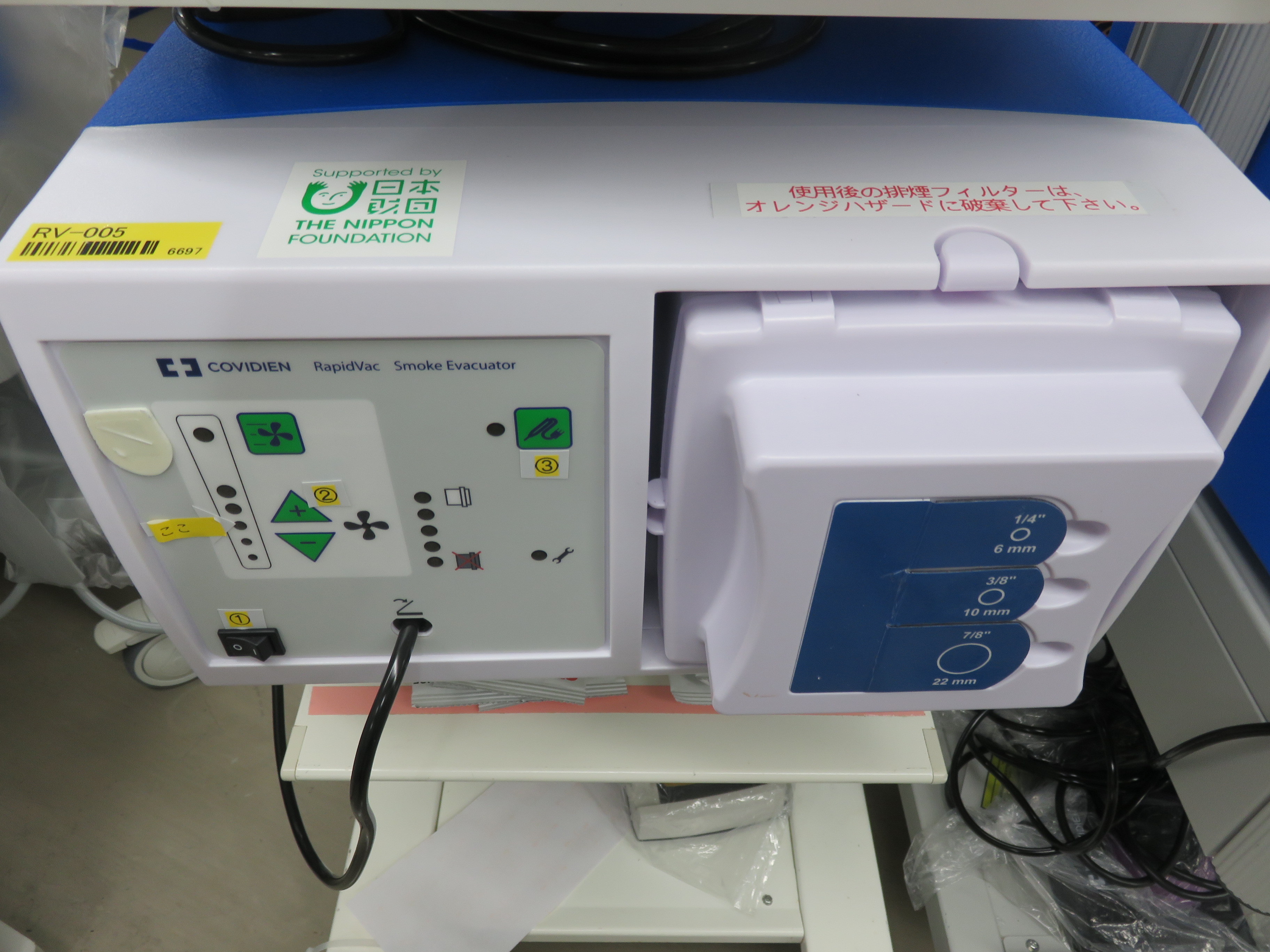 (1)簡易陰圧装置 2台 (2)(3)RapidVac排煙システム 6台 (4)卓上型安全キャビネット 1台 (5)全自動遺伝子解析装置 一式 (6)携帯型軟性気管支鏡オリンパスMAF-TM2台 オリンパスMAF-DM2 2台 (7)タブレット型超音波診断装置 一式 (8)新棟ER外来ブース陰圧化対策 一式 (9)感染症対策個人用防護具 一式 等 このうち、写真については(1)・(2)・(4)・(5)を抜粋して順に掲載。 |